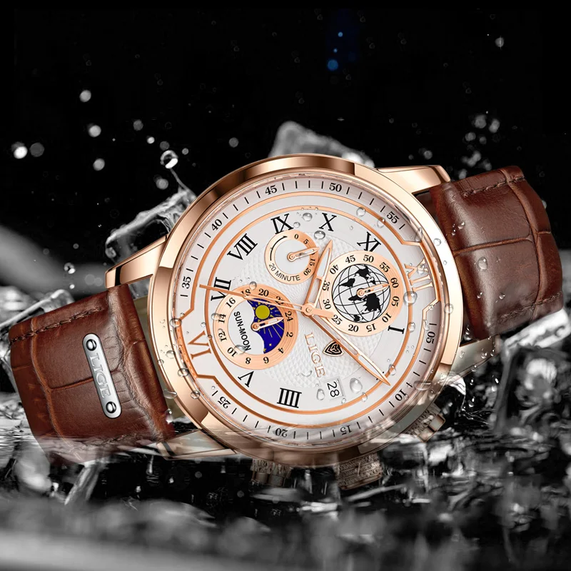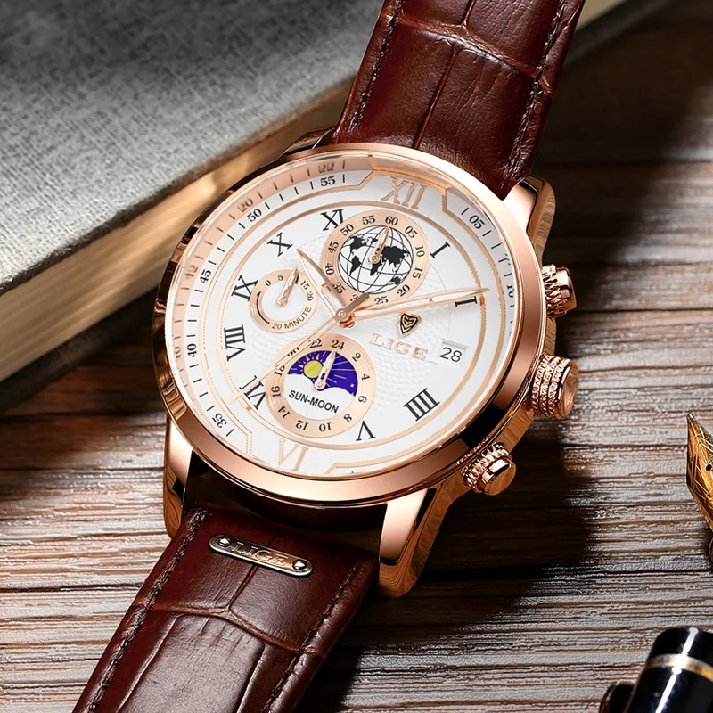 LIGE Luxury Man Wristwatch Waterproof Luminous Chronograph Watch for Men Leather Strap Men’s Quartz Watches Reloj Hombre+Box