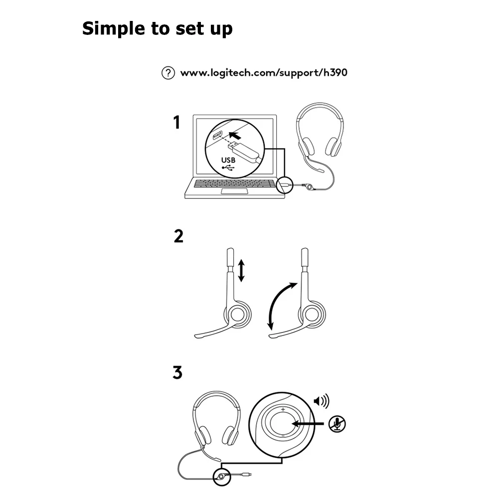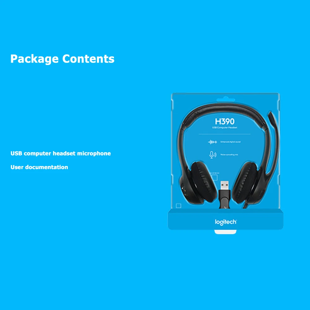 Logitech H390 USB Wired Headset Stereo Headphones with Noise-Cancelling Microphone For PC/Mac/Laptop