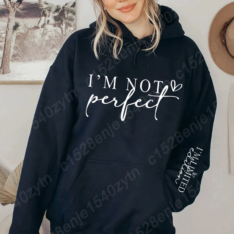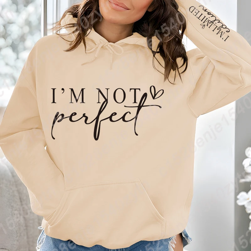 ‘m Not Perfect Print Hoodies Alphabets Print Hooded Sweatshirt Casual Style for Women Perfect for Winter and Fall Season