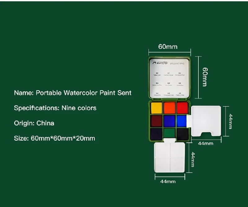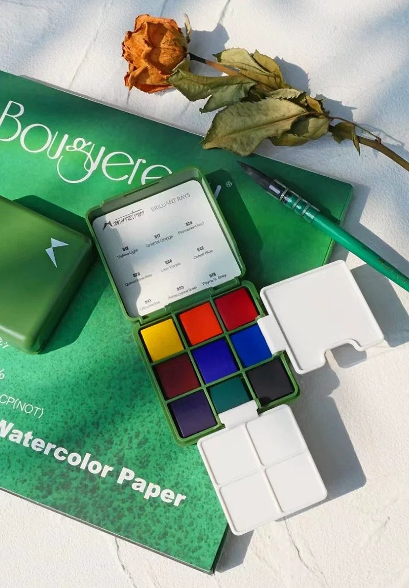 MAIRTINI Travel Watercolor Paint Set 9-color Mini Portable Palette Solid Watercolor Paint Sketching Painting Paper Art Supplies