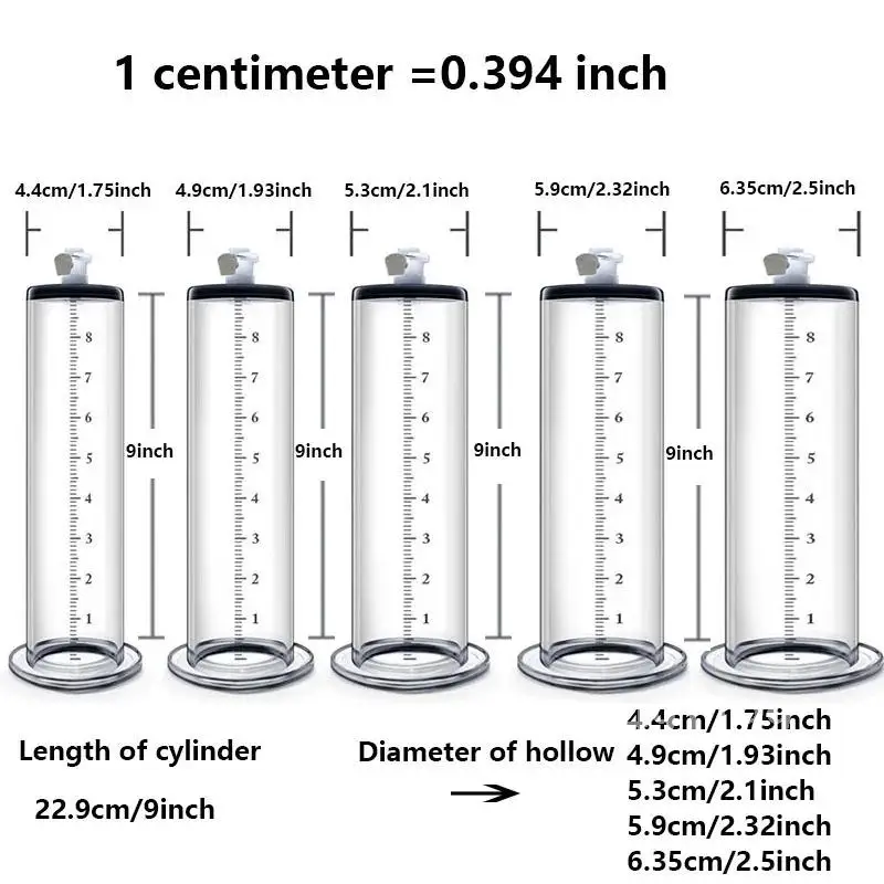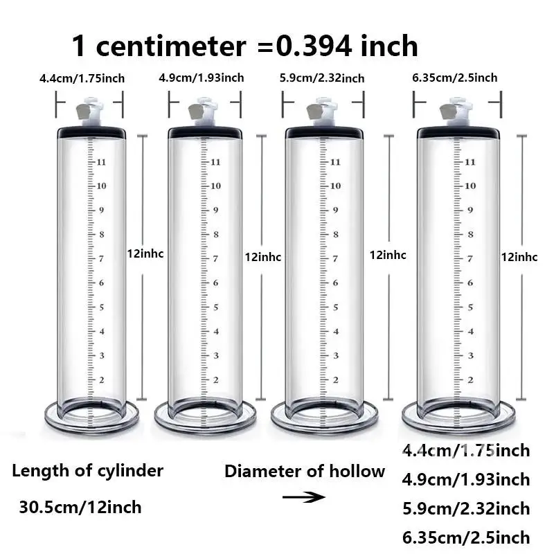 A clear acrylic penis pump cylinder of your choice of size, with a comfortable flange