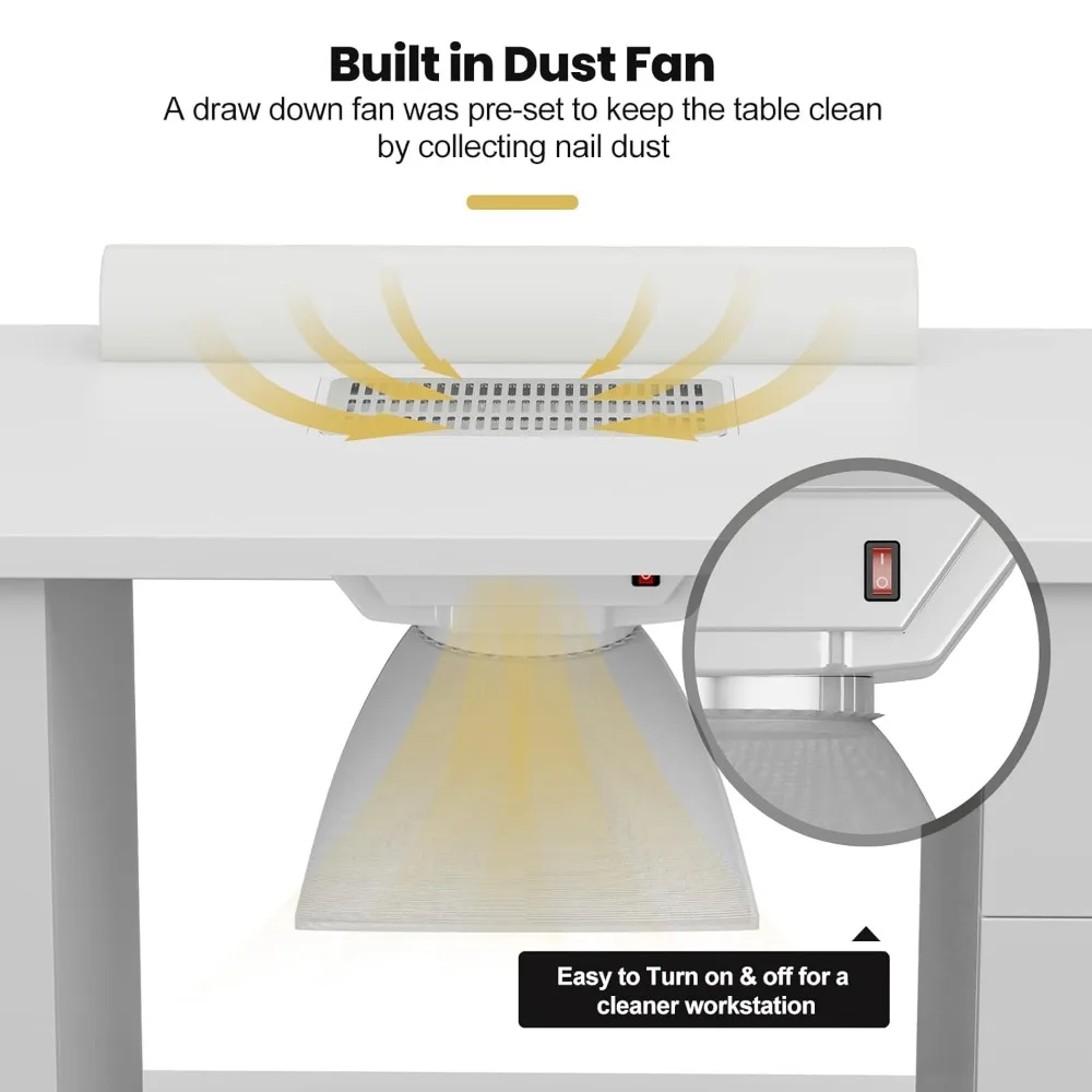 💅【ELECTRIC DUST COLLECTOR】- The nail manicure table comes with strong and efficient built-in electric downdraft vent and dust collector, one button to clean away nail crumbs and dust generated during manicure and collect into the dust bag in seconds, no more dust flying, giving you and your customers a free-breathing and hygienic environment.