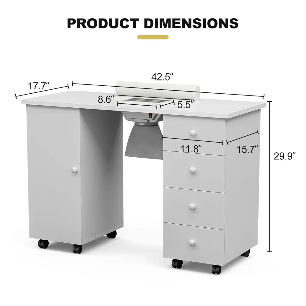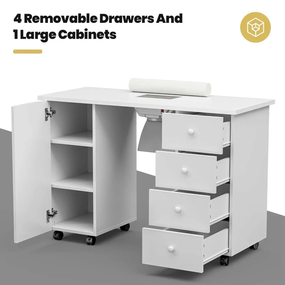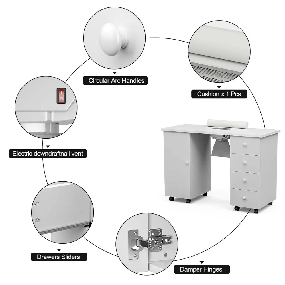 Manicure Table Nail Station, Nail Desk Workstation Nail Art Equipment w/Electric Downdraft Vent, Wrist Cushion, Lockable Wheels
