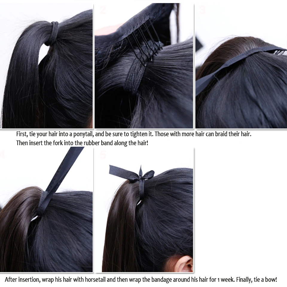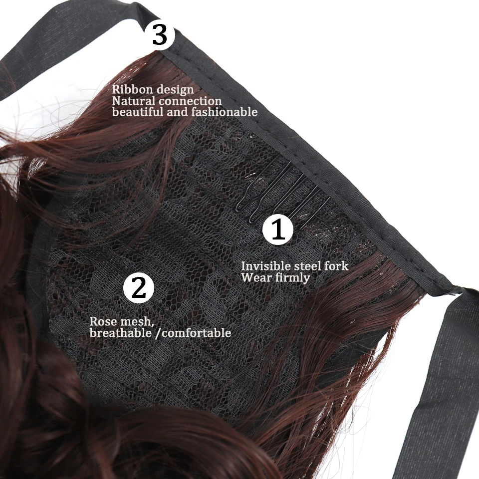 MEIFAN Synthetic Long Wavy Curly Ponytail for Women Ribbon Drawstring Tied to Hair Tail Hair Extension Natural Fake Hairpiece