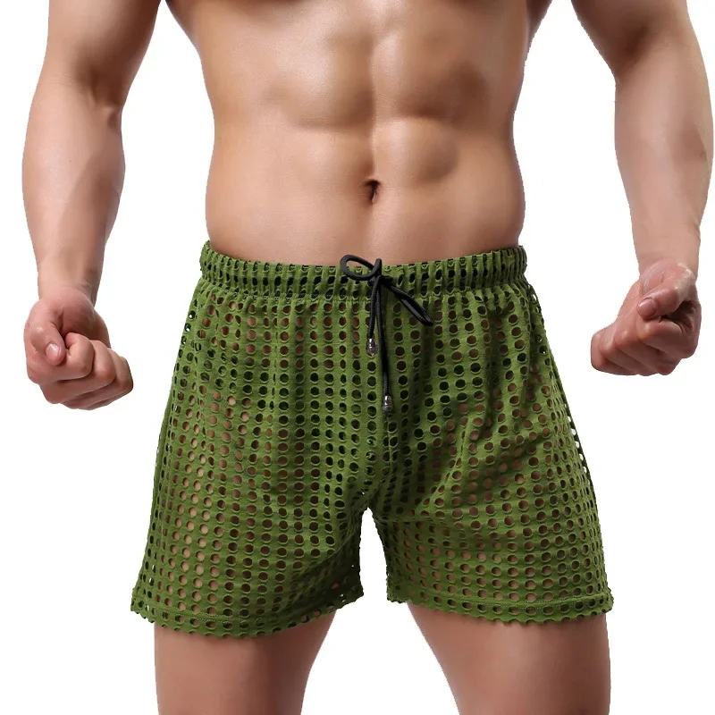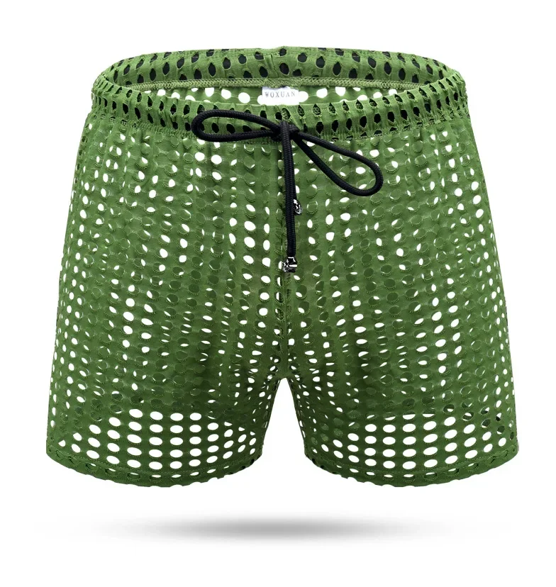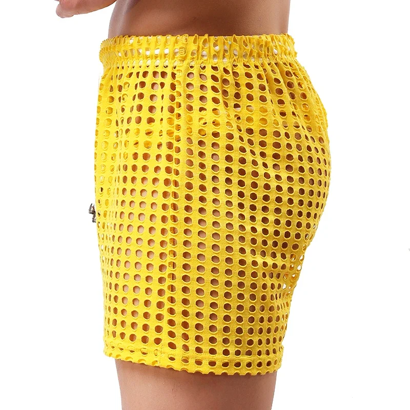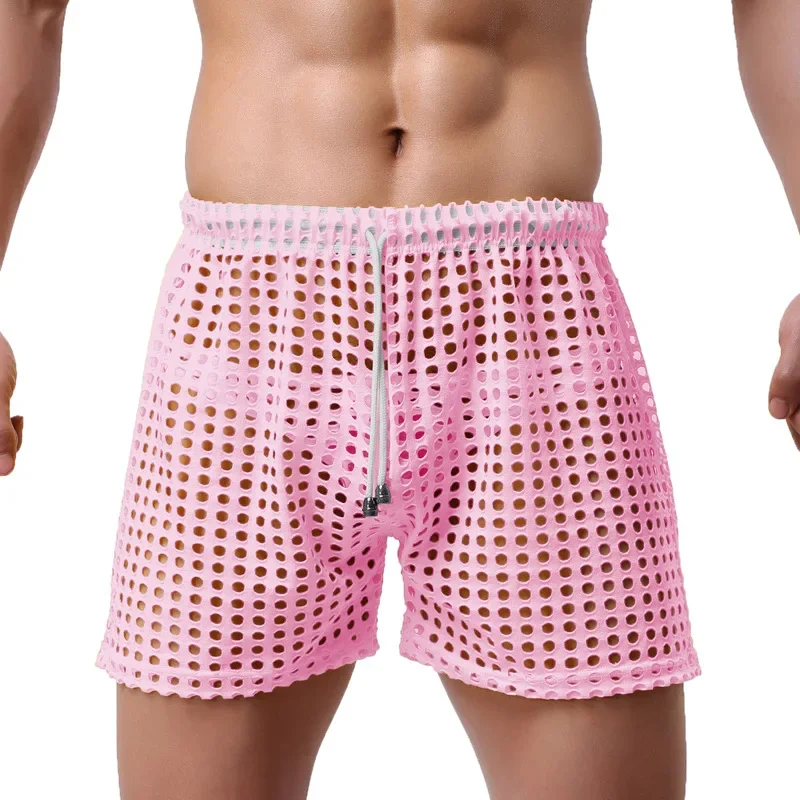 Men Mesh Board Shorts Beach Swimwear Boxers Fishnet Underwear Turnks Casual Surfing Shorts Quick Dry