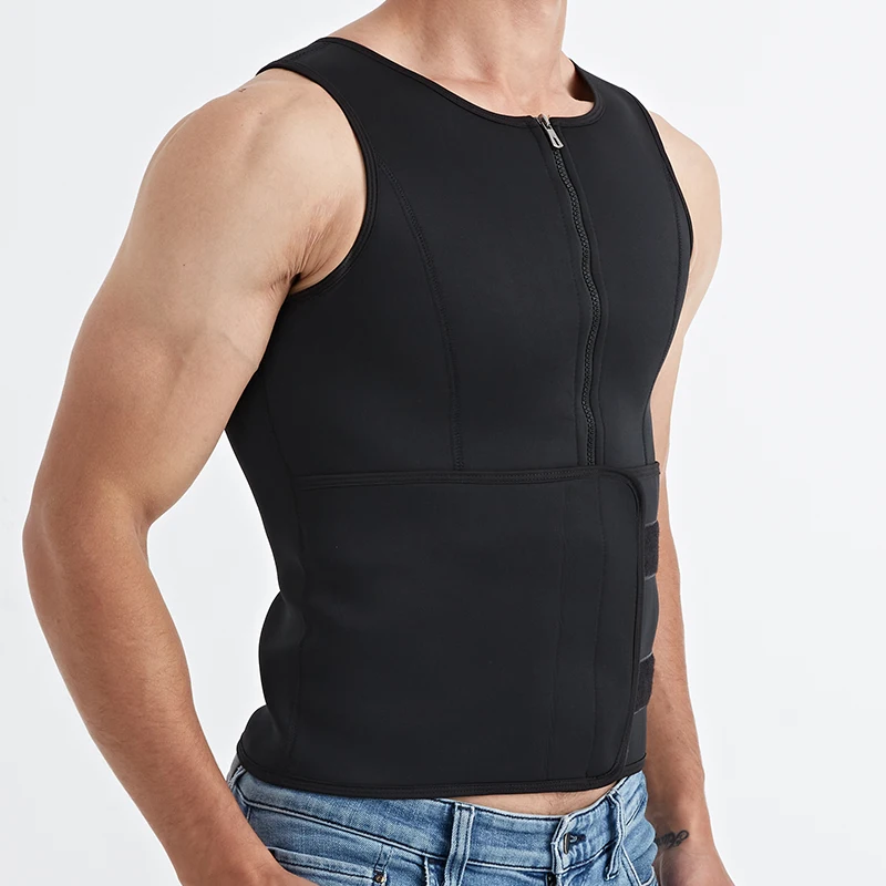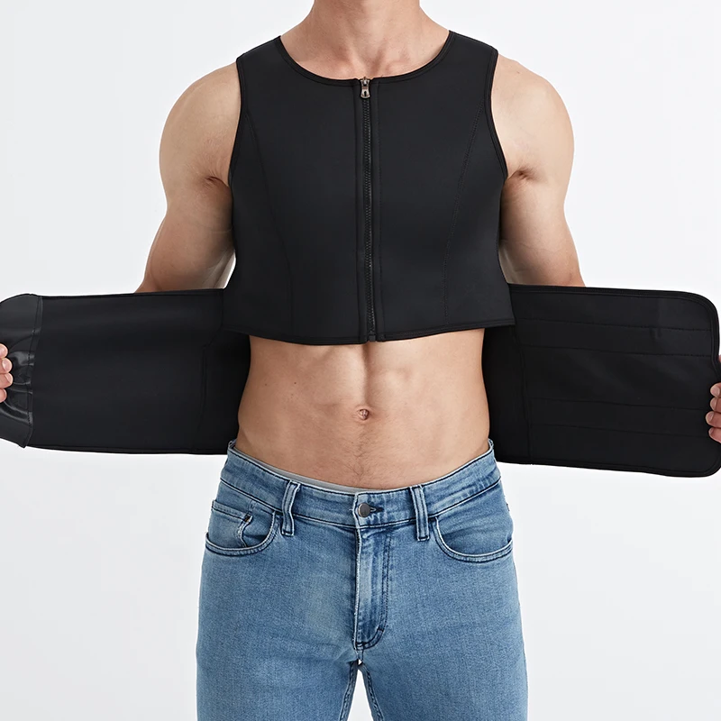 Men Neoprene Sauna Zipper Waist Trainer Corset Vest Belly Trimmer Compression Body Shaper Shirts Slimming Belt Faja Shapewear