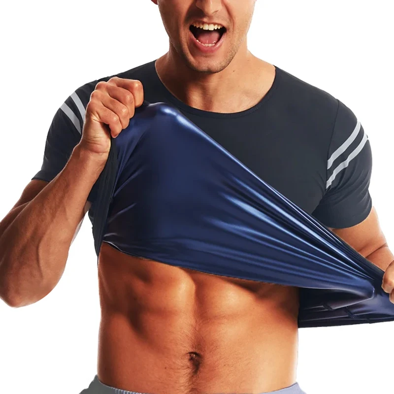 Men Sauna Sweat Shirt Heat Trapping Compression Vest Waist Trainer Gym Workout Shirts Slimming Body Shaper Weight Loss Tank Tops