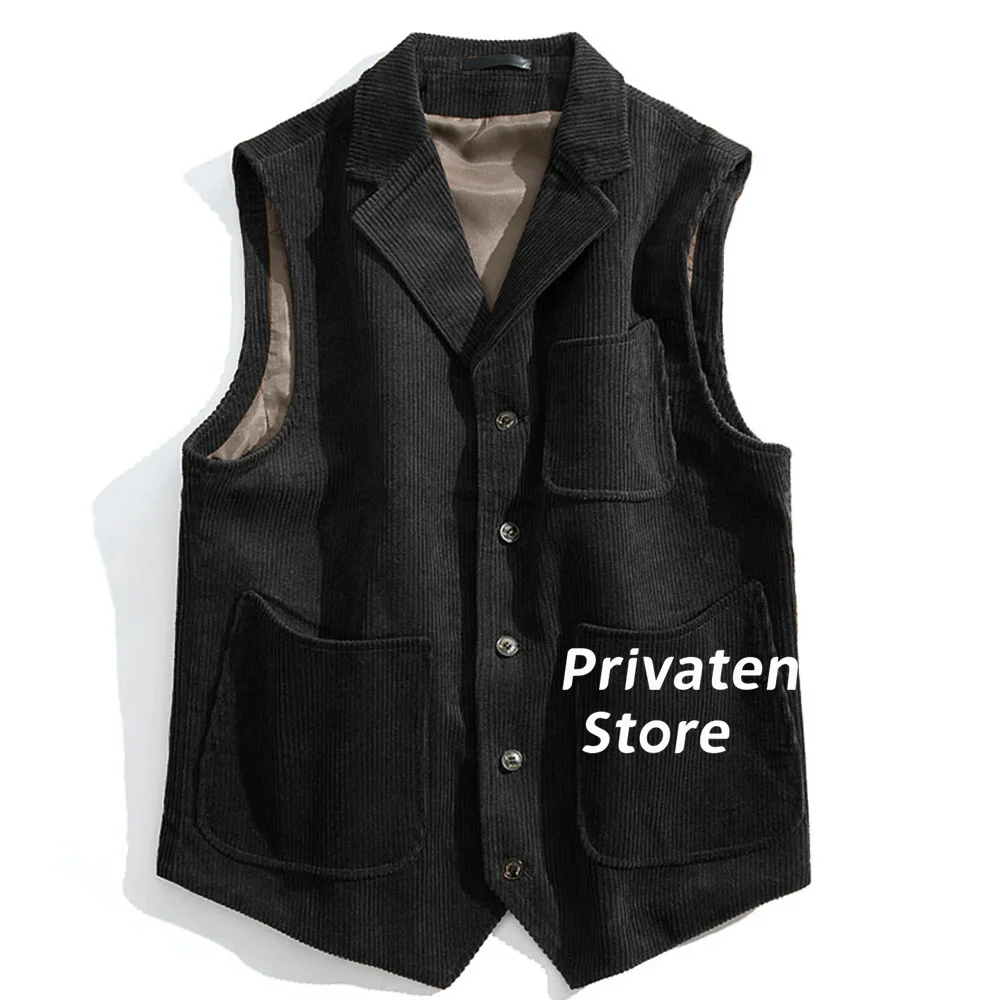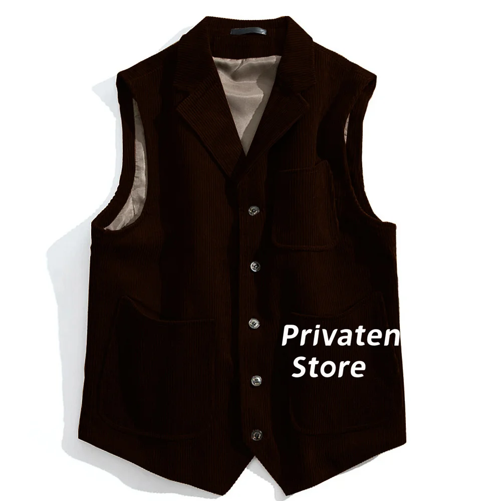 Men Vest Cotton Corduroy Light Brown Notched Lapel Solid Color With Pockets New Style Gilet For Male Clothing жилетка