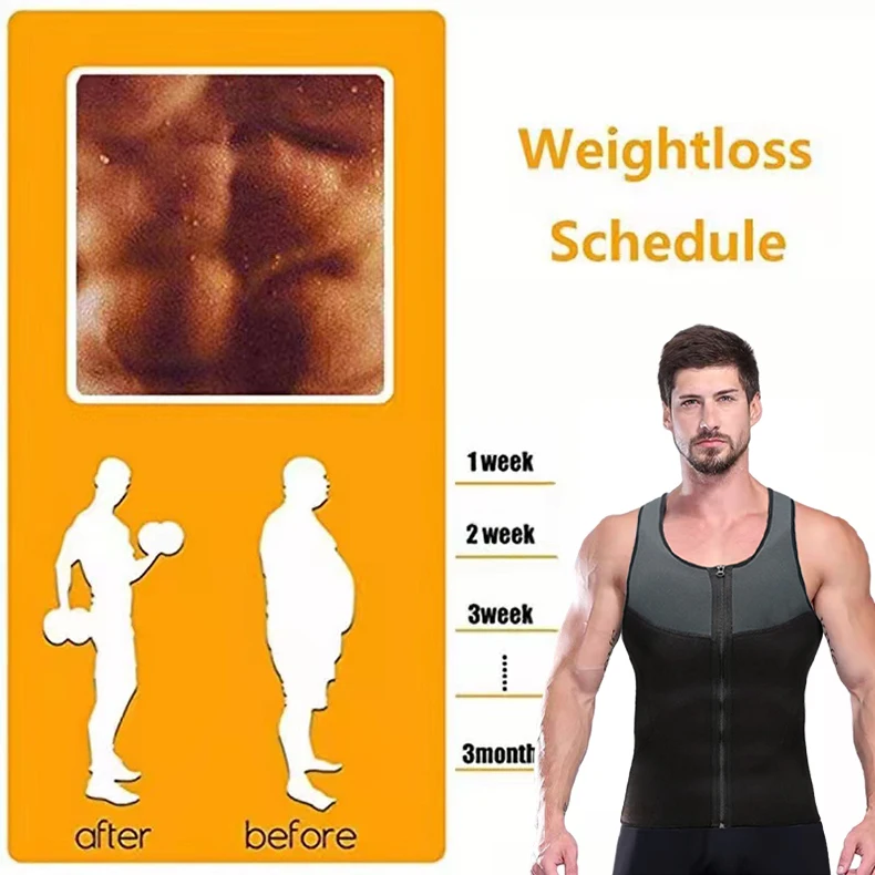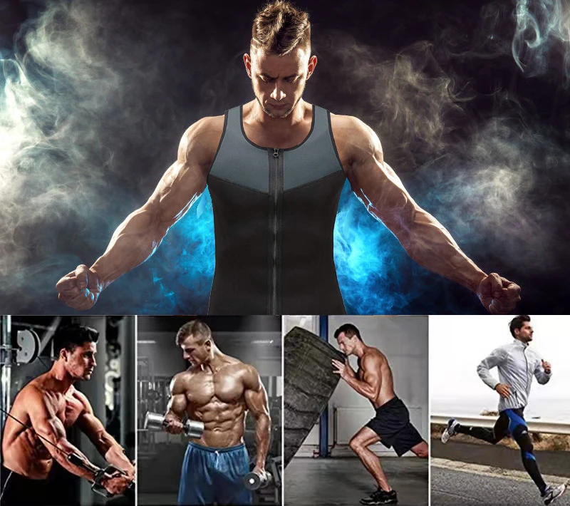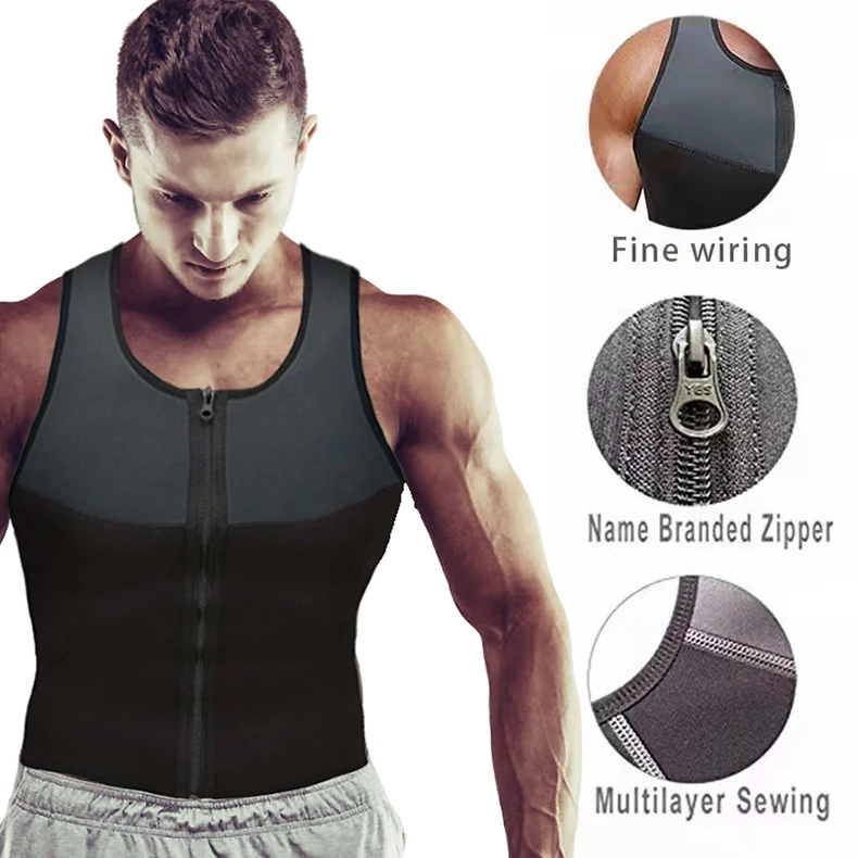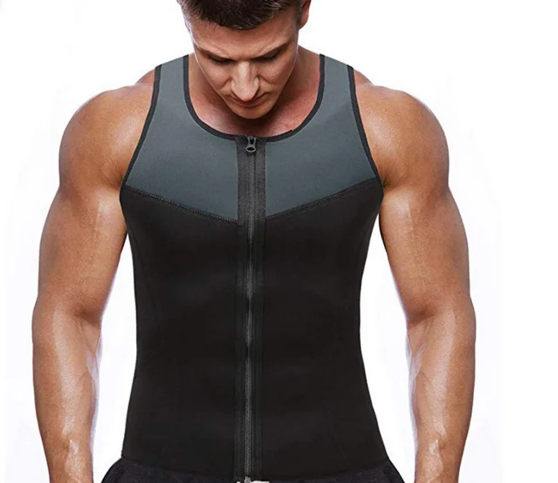 Men's Shaper Wear,Vest,Neoprene,Extreme Sweating,Abdomen,Zipper,Splicing,Fitness,V-neck,Sauna Suit,Corset Top,Shirt,Sauna