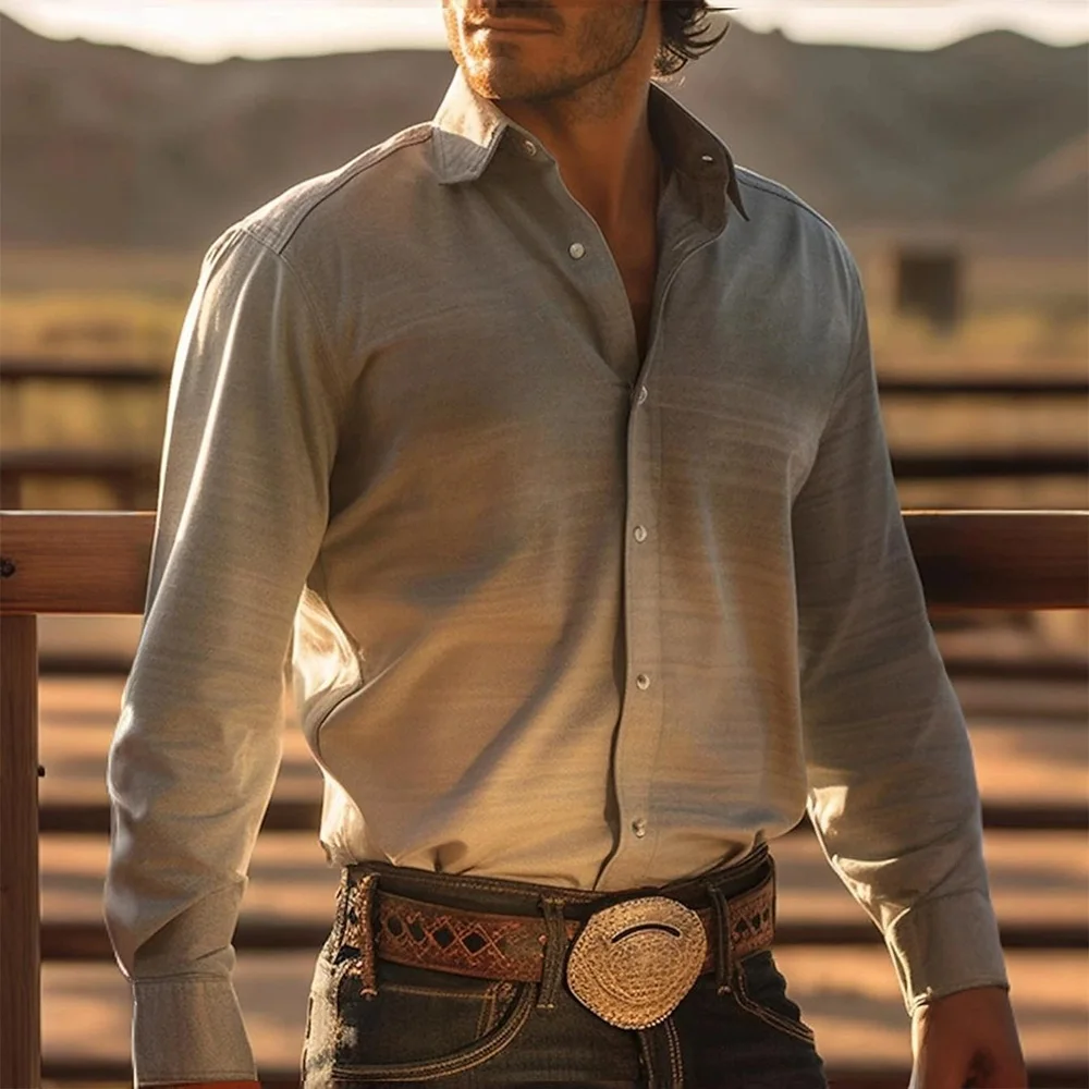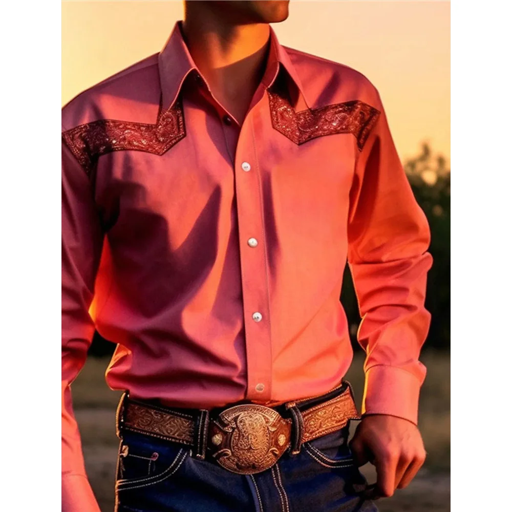 Men’s Shirt Yellowstone Western Denim Shirt Elegant patchwork vintage men’s lapel button top Stylish casual long-sleeved shirt