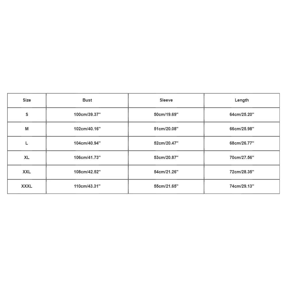 | Size:XXXL | Bust:110cm/43.31” | Sleeve:55cm/21.65” | Length:74cm/29.13” |