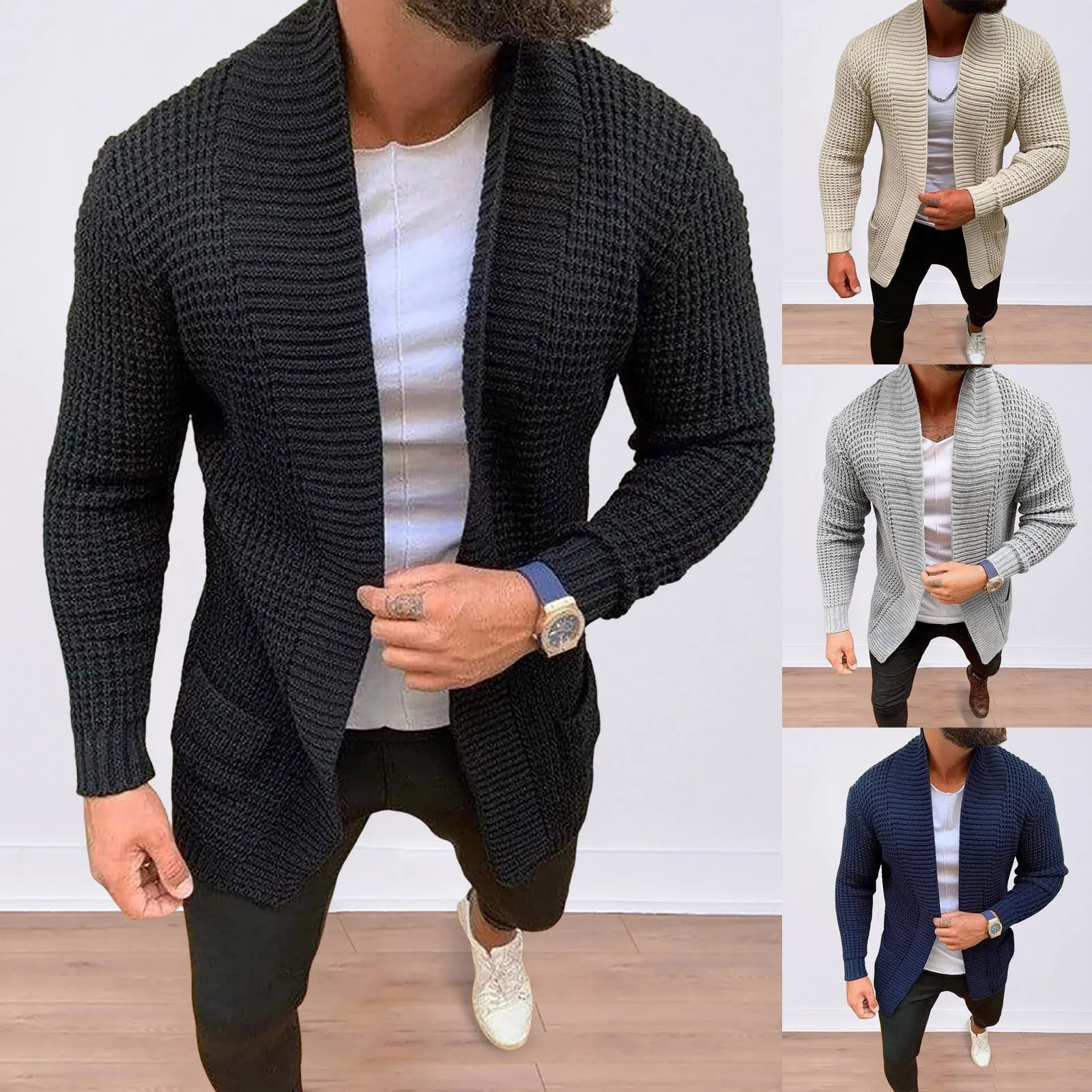 Men’S Sweater Cardigan Knitting Fashion Solid Color Casual Coat For Mens Loose Fit Casual Long Sleeve Cardigan Coats Puls Size