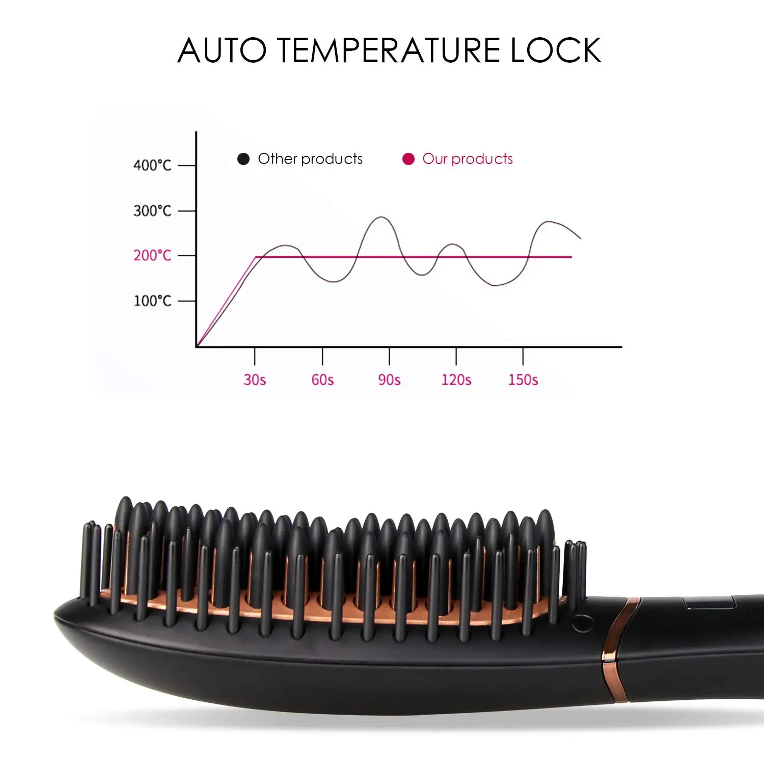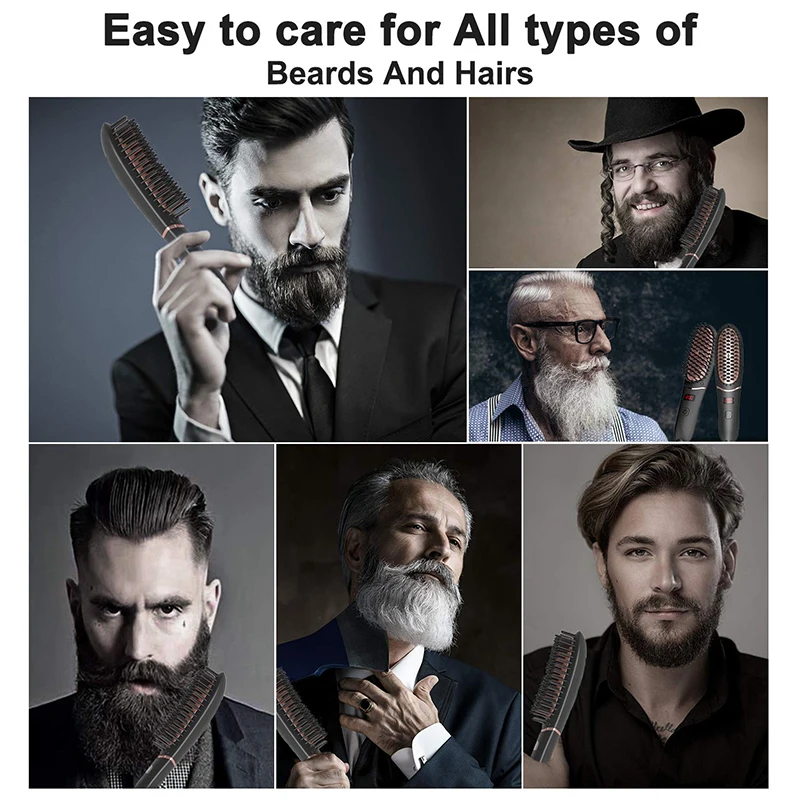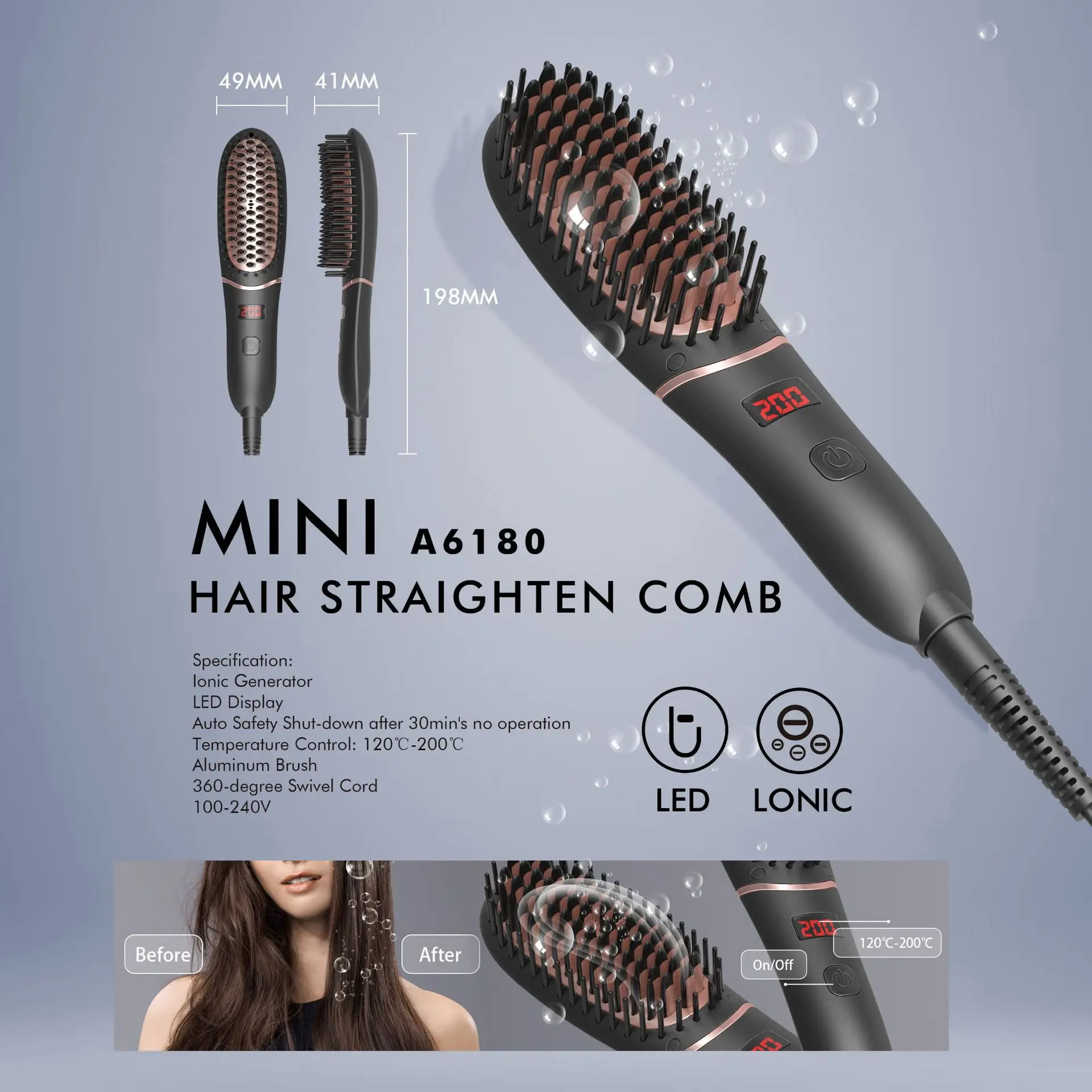 Mini Ceramic Hair Straightener Brush for Women and Men Fast Heat Rechargeable Hot Comb 5 Level Temperature Beard and Hair Styler