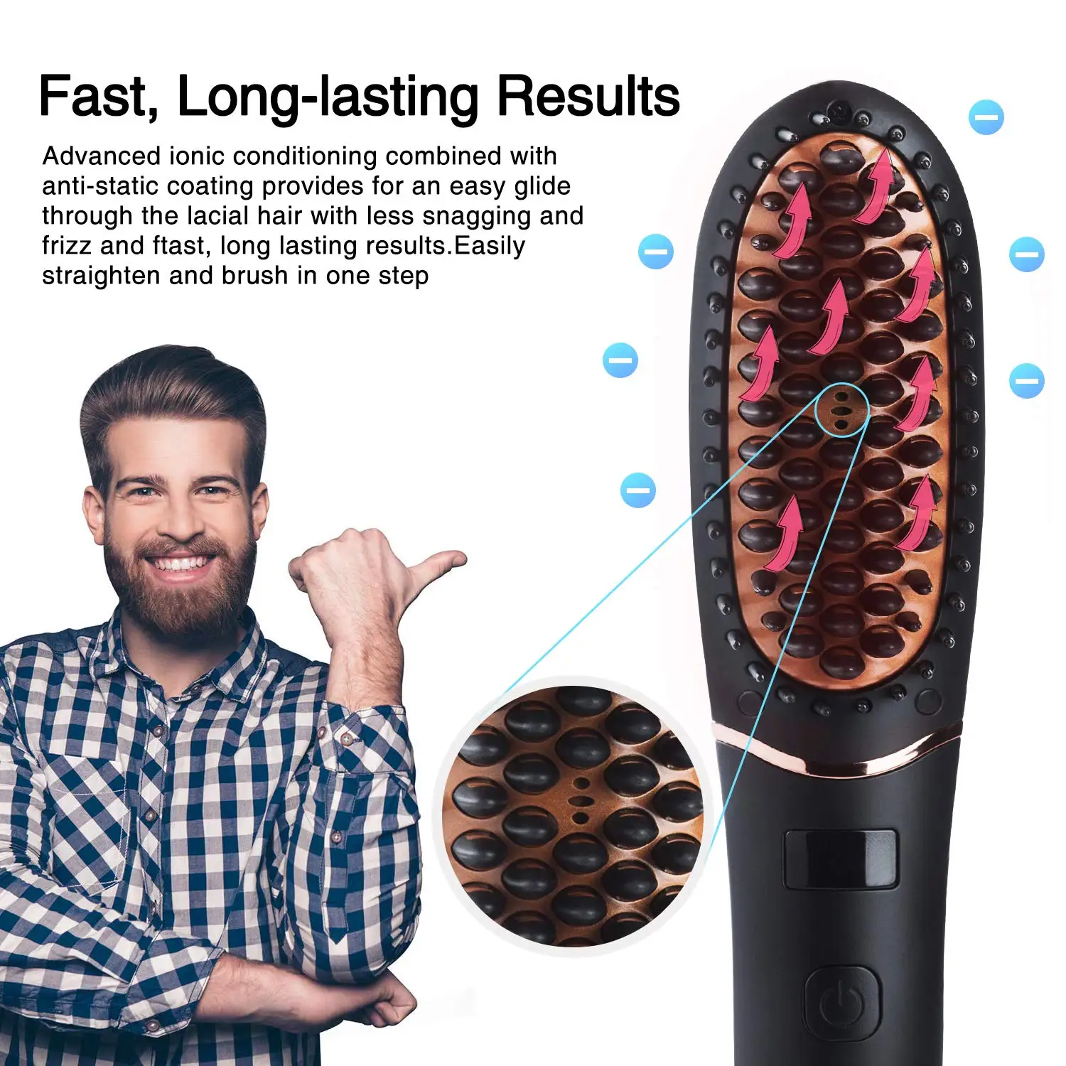 Mini Ceramic Hair Straightener Brush for Women Men Fast Heat Rechargeable Negative Ionic 5 Level Temperature Beard Hair Styler