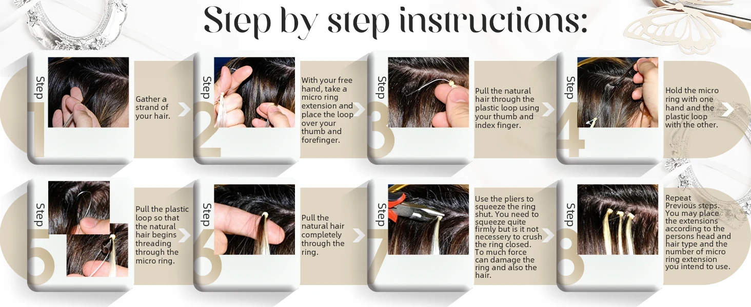 3. Push the micro ring towards the scalp and leave gaps for free movement of your hair