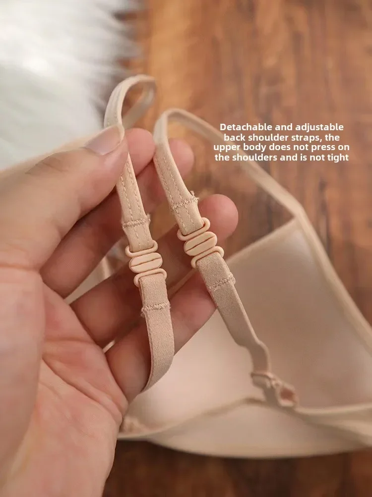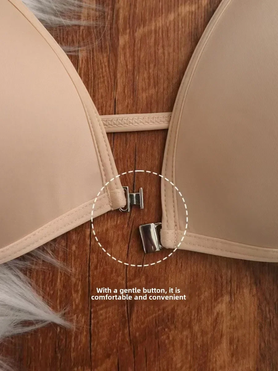 MOYISU French Triangle Cup Underwear Women’s Thin Straps Beautiful Back Halter Invisible Front Buckle Bra Thin Seamless Bra
