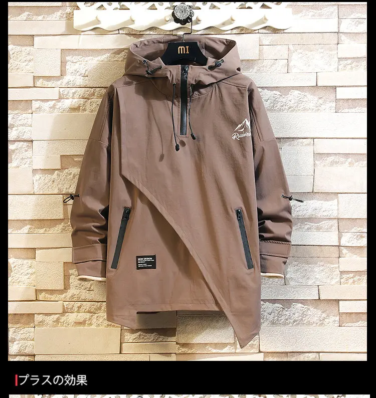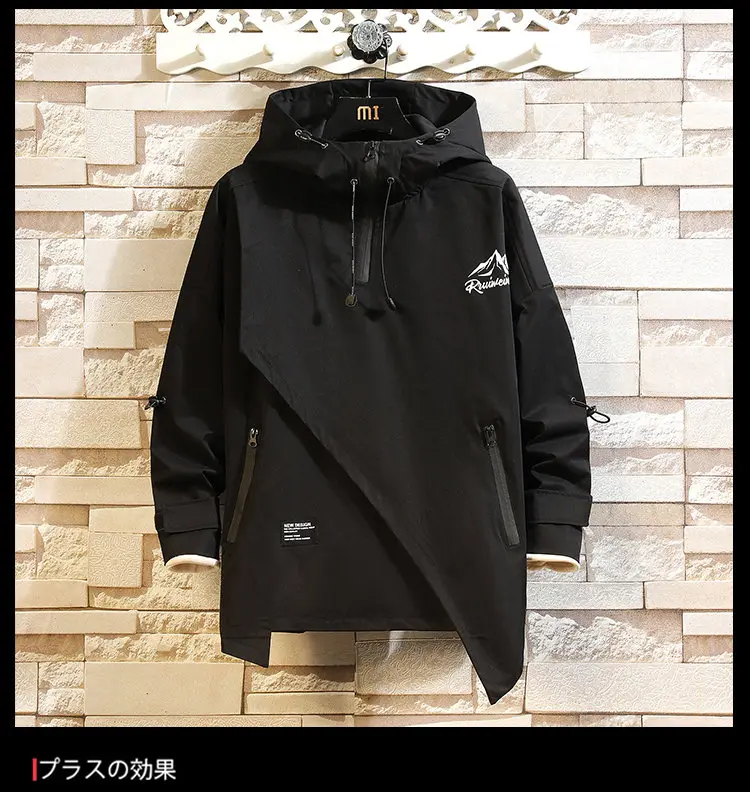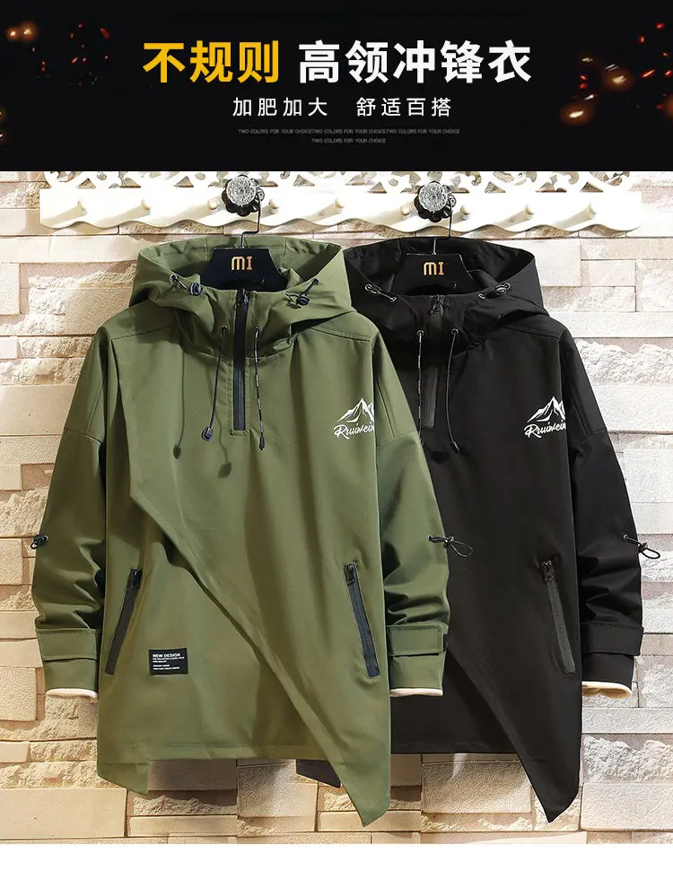 Mr.nut High Collar Hooded Irregular Jacket Men’s 2024 Autumn Oversize Outdoor Jackets Fashion Men Clothing Windbreak Male Coat