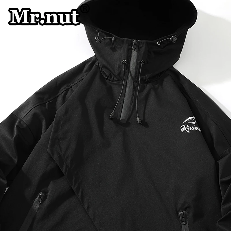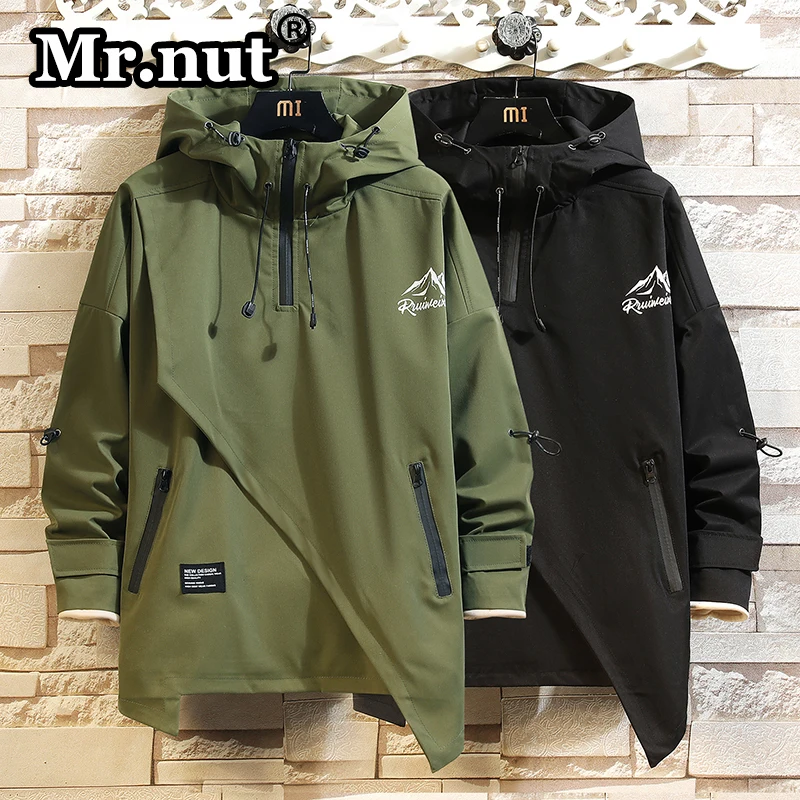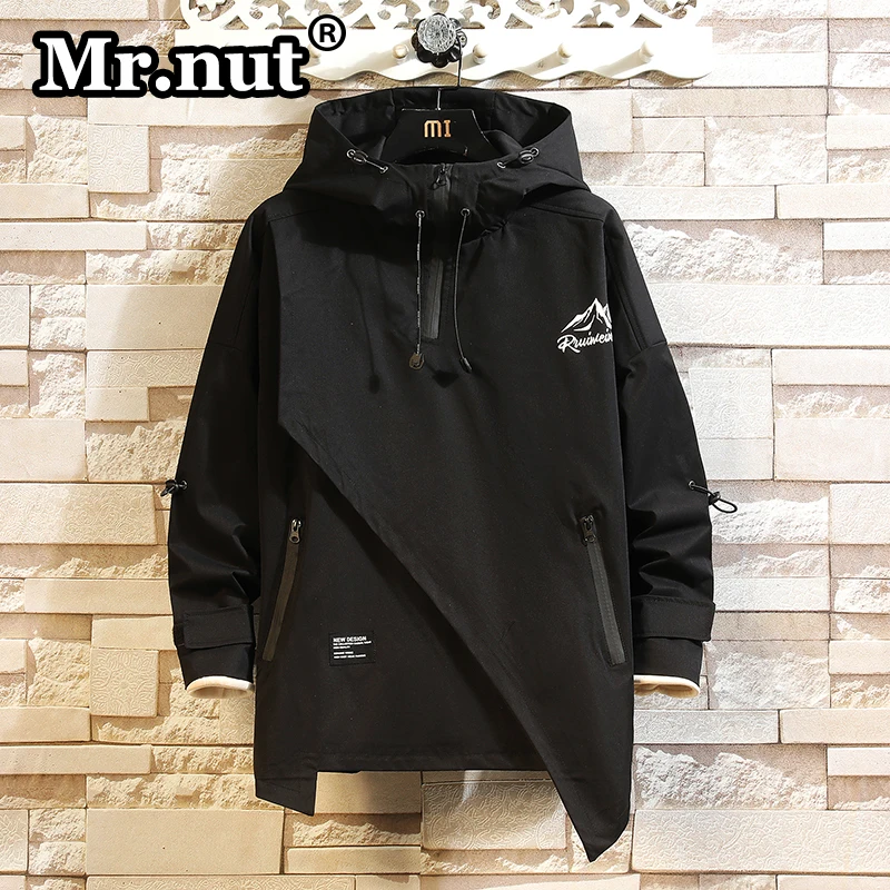 Mr.nut High Collar Hooded Irregular Jacket Men’s 2024 Autumn Oversize Outdoor Jackets Fashion Men Clothing Windbreak Male Coat