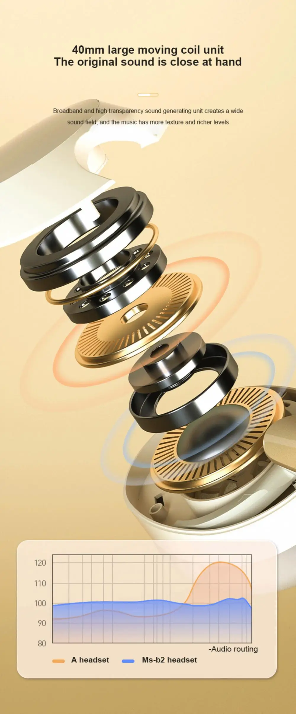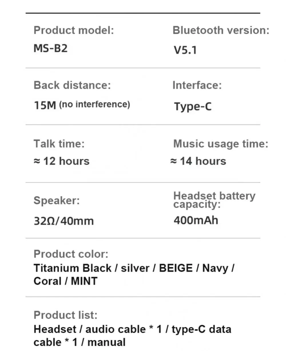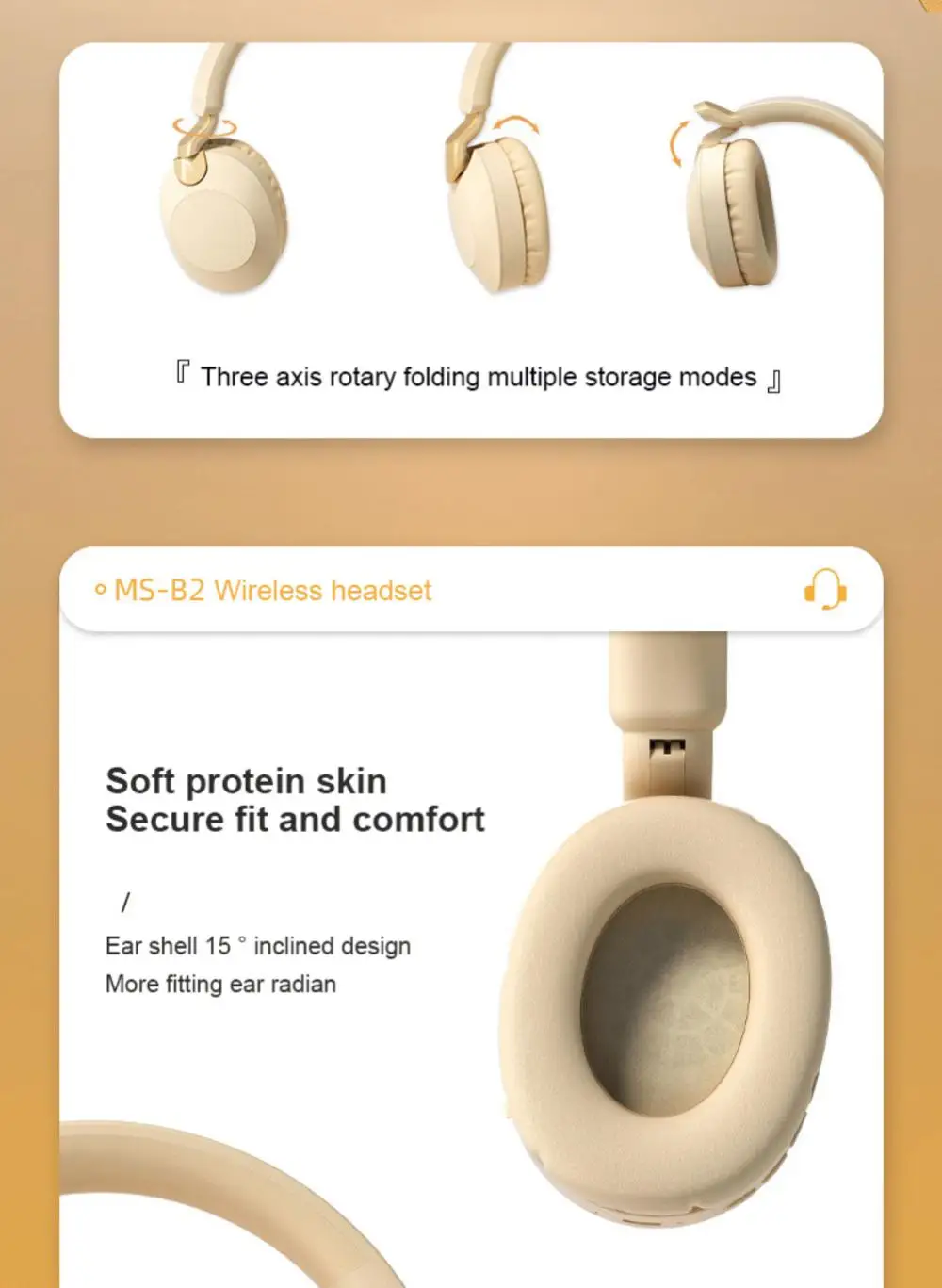 MS-B2 Active Noise Cancelling Wireless Bluetooth-compatible Headphones Deep Bass Bluetooth 5.1 Headset with Mic 14H Playtime