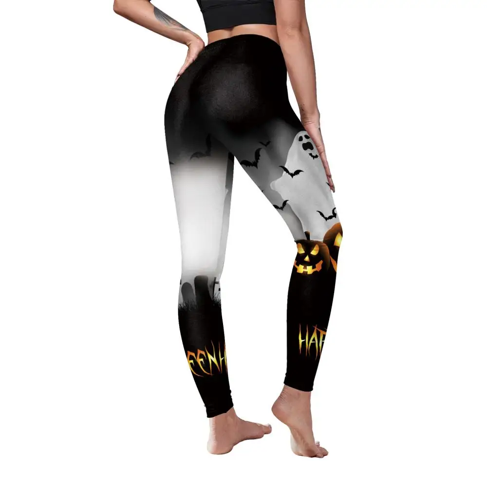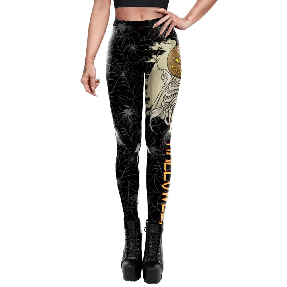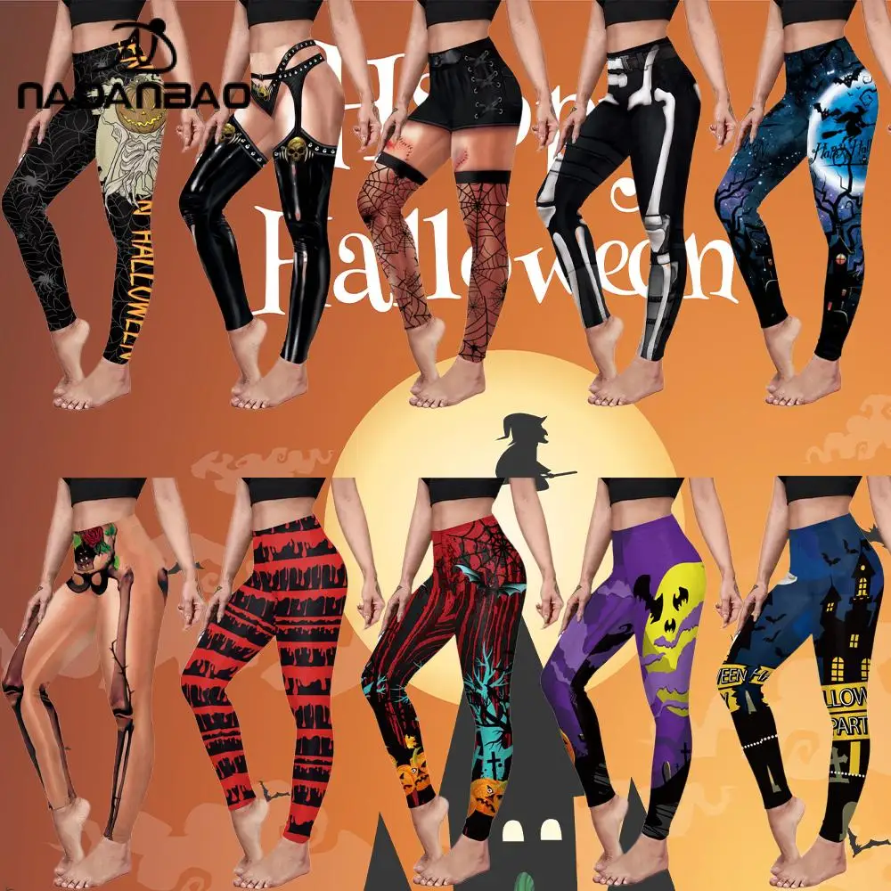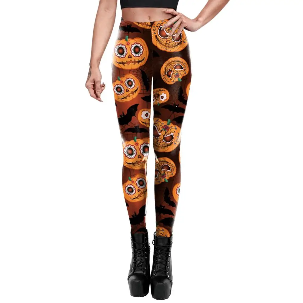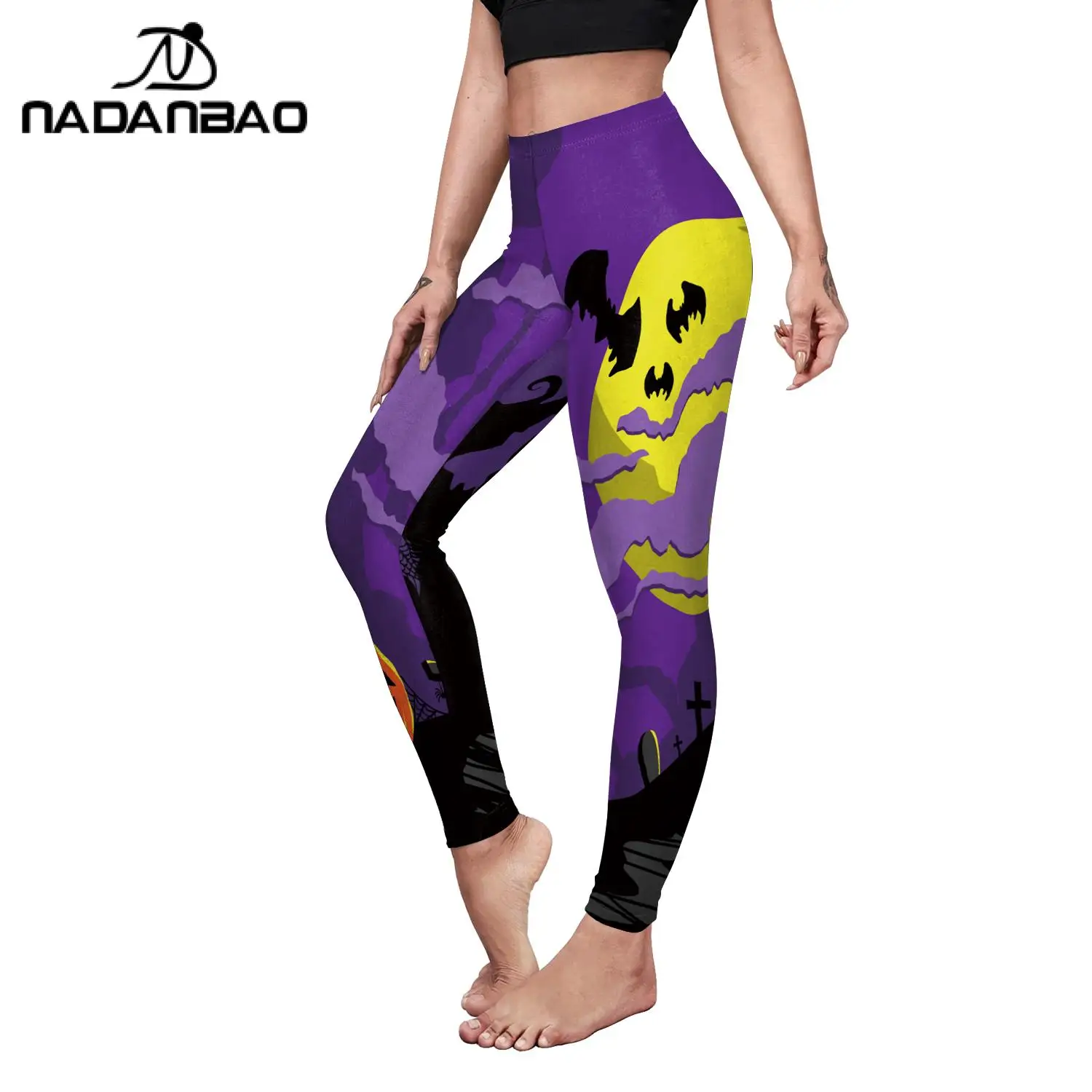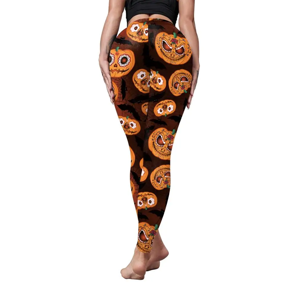 Nadanbao Women Leggings Sexy Tights Halloween Orange Pumpkin 3D Printed Workout Trousers Gym Home Mid Waist Streetwear Pants