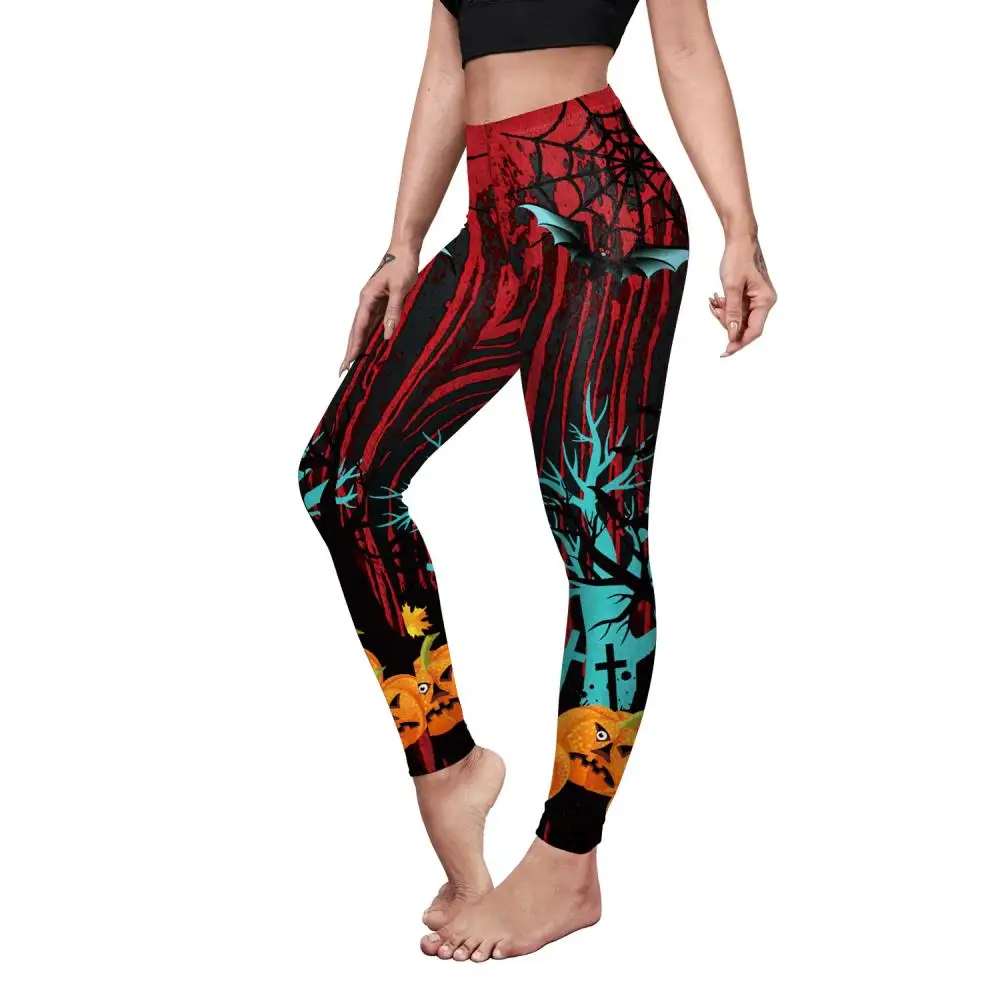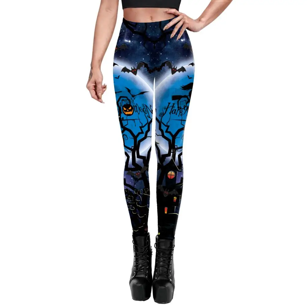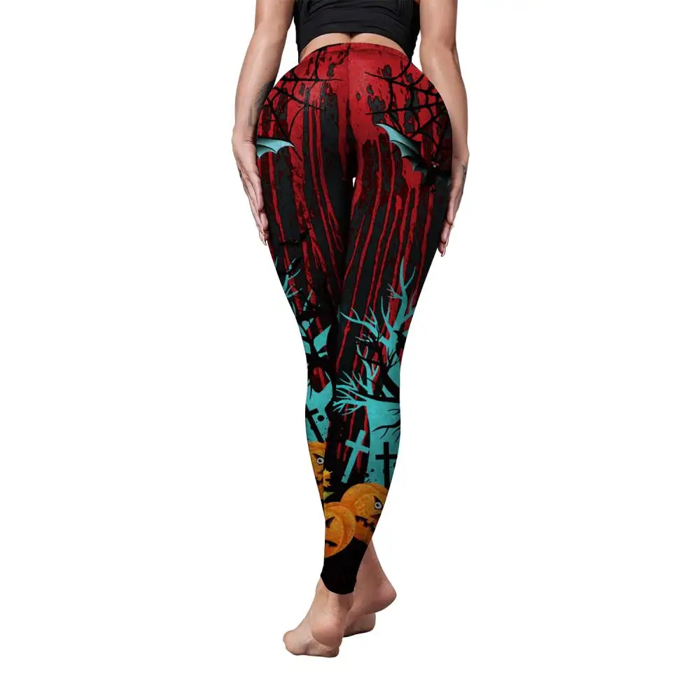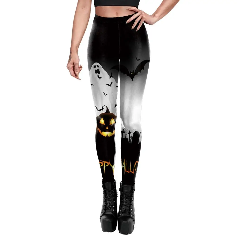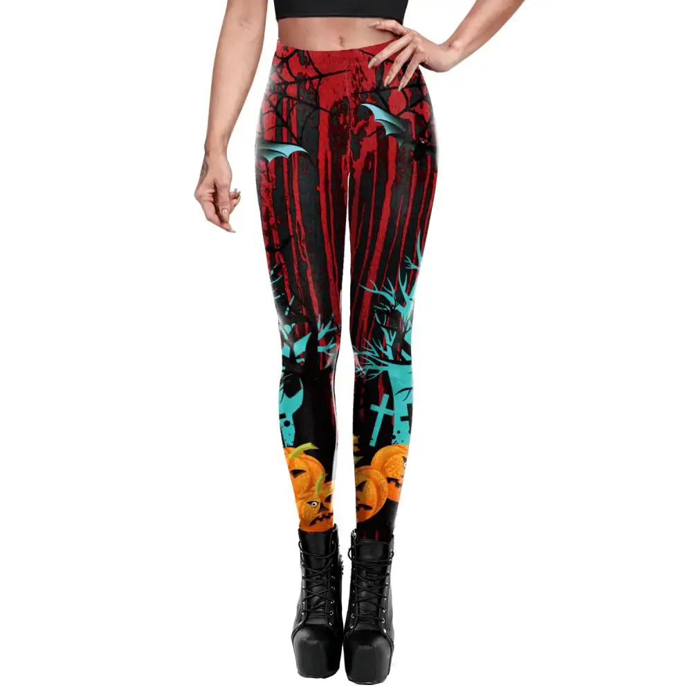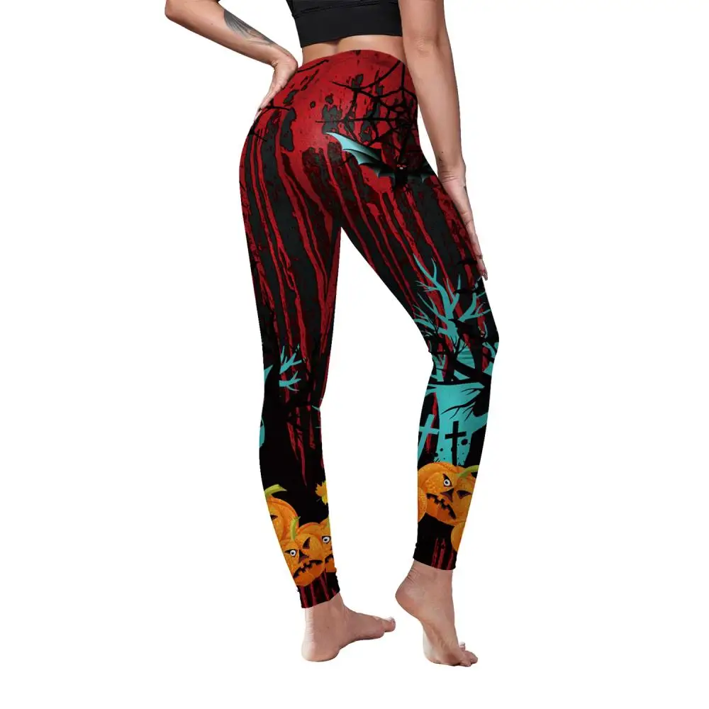 Nadanbao Women Leggings Sexy Tights Halloween Orange Pumpkin 3D Printed Workout Trousers Gym Home Mid Waist Streetwear Pants