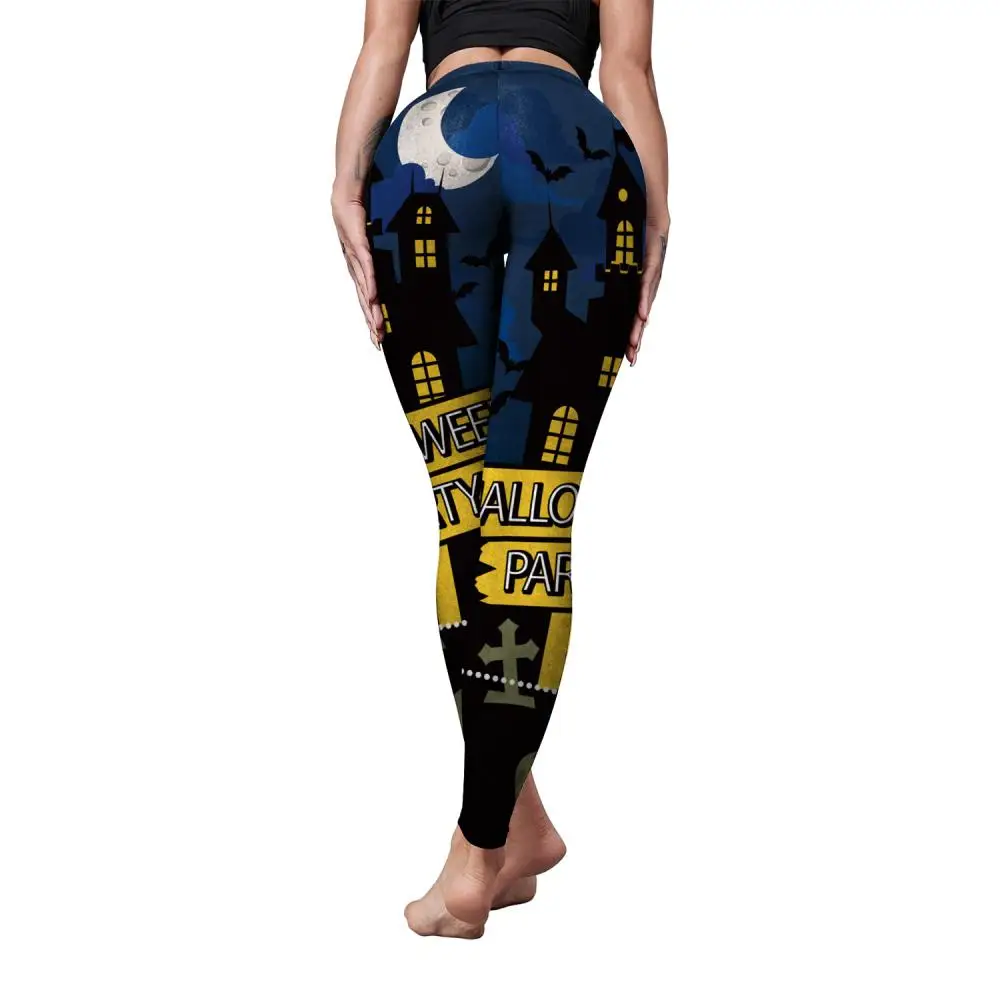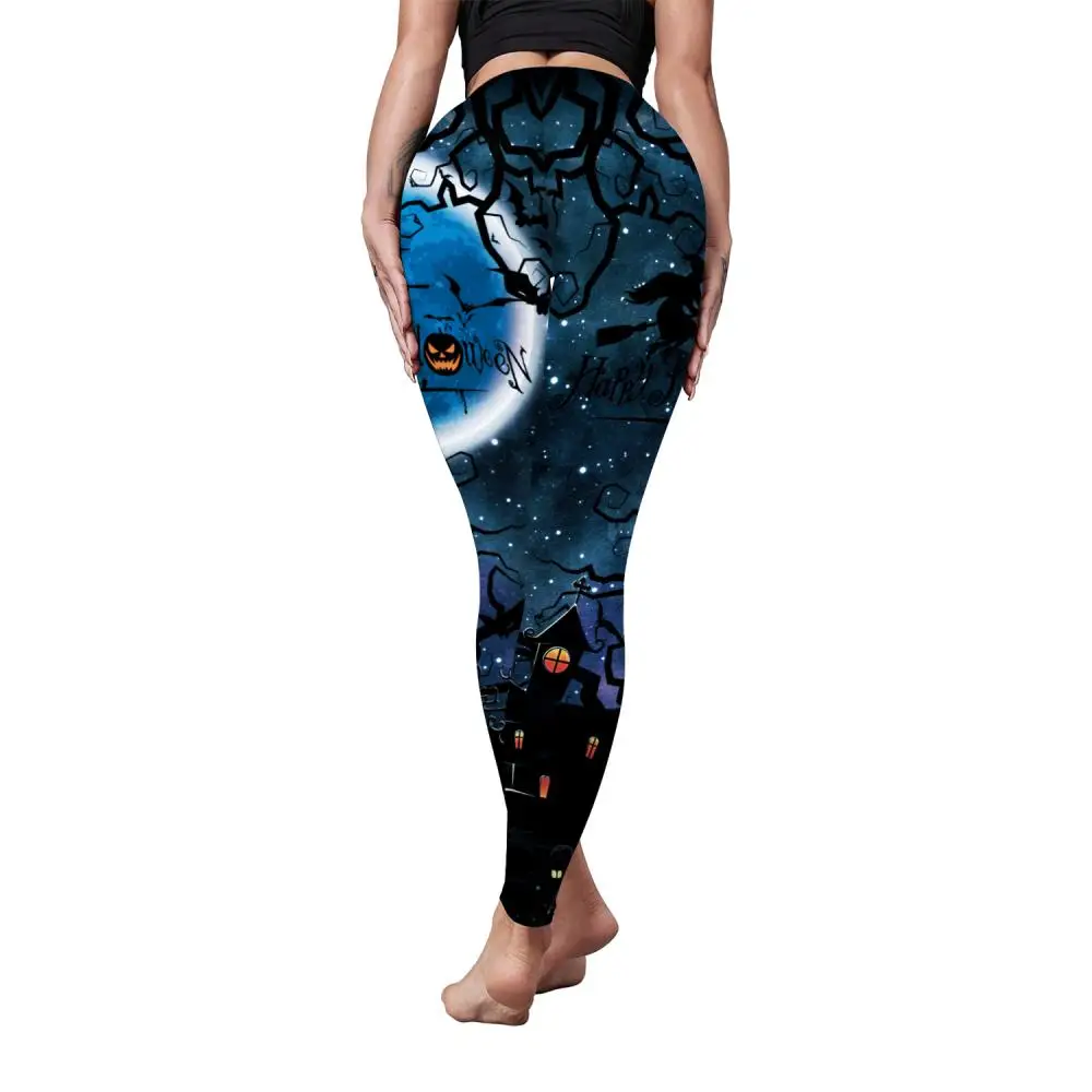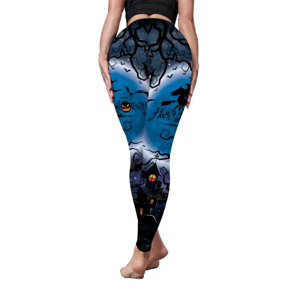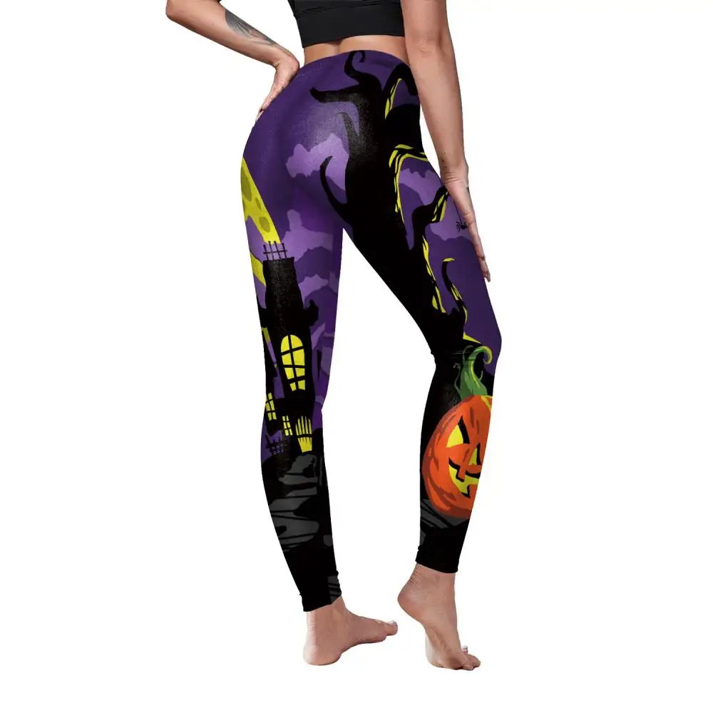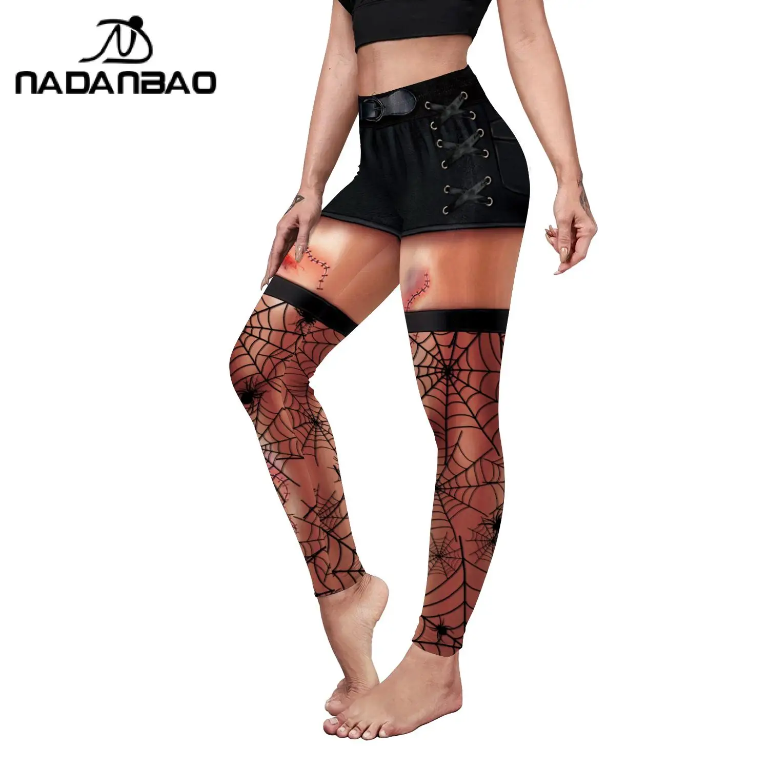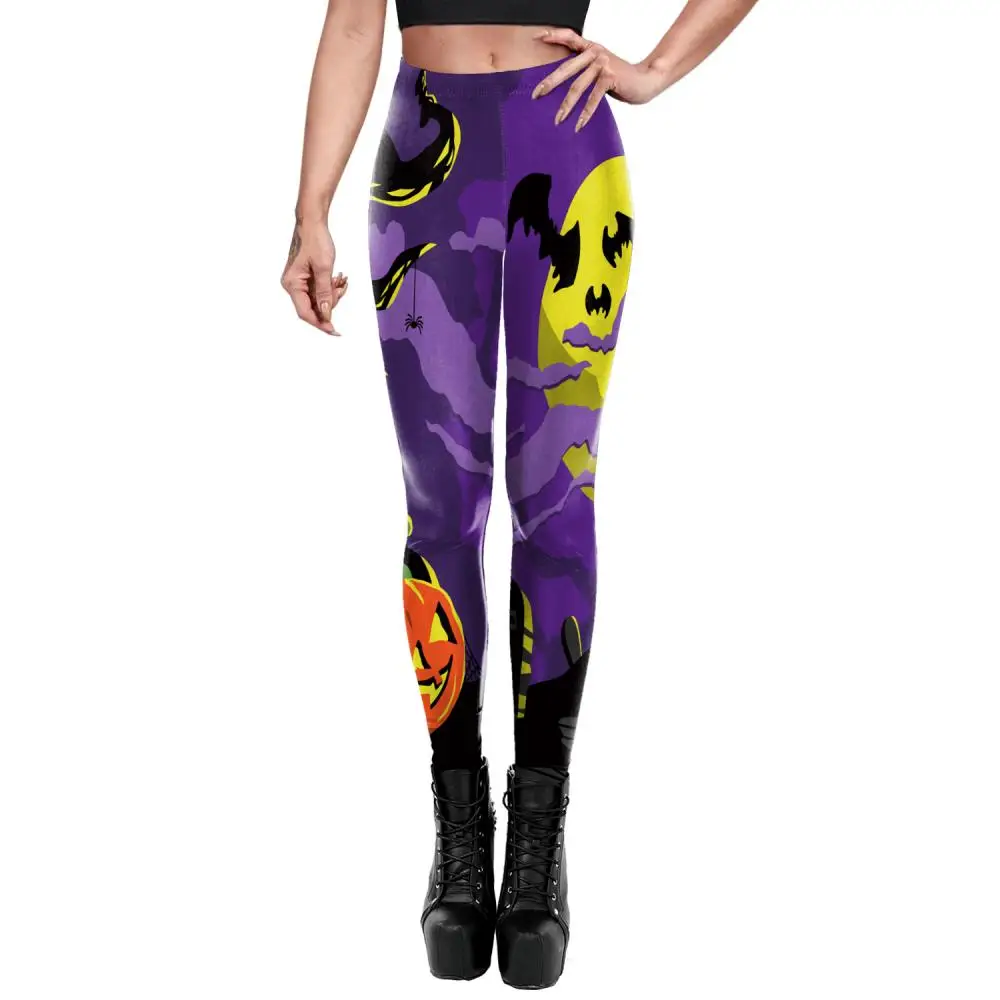 Nadanbao Women Leggings Sexy Tights Halloween Orange Pumpkin 3D Printed Workout Trousers Gym Home Mid Waist Streetwear Pants