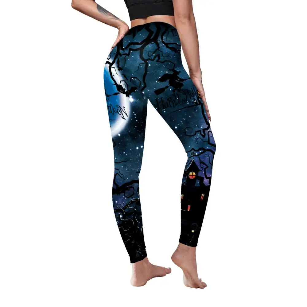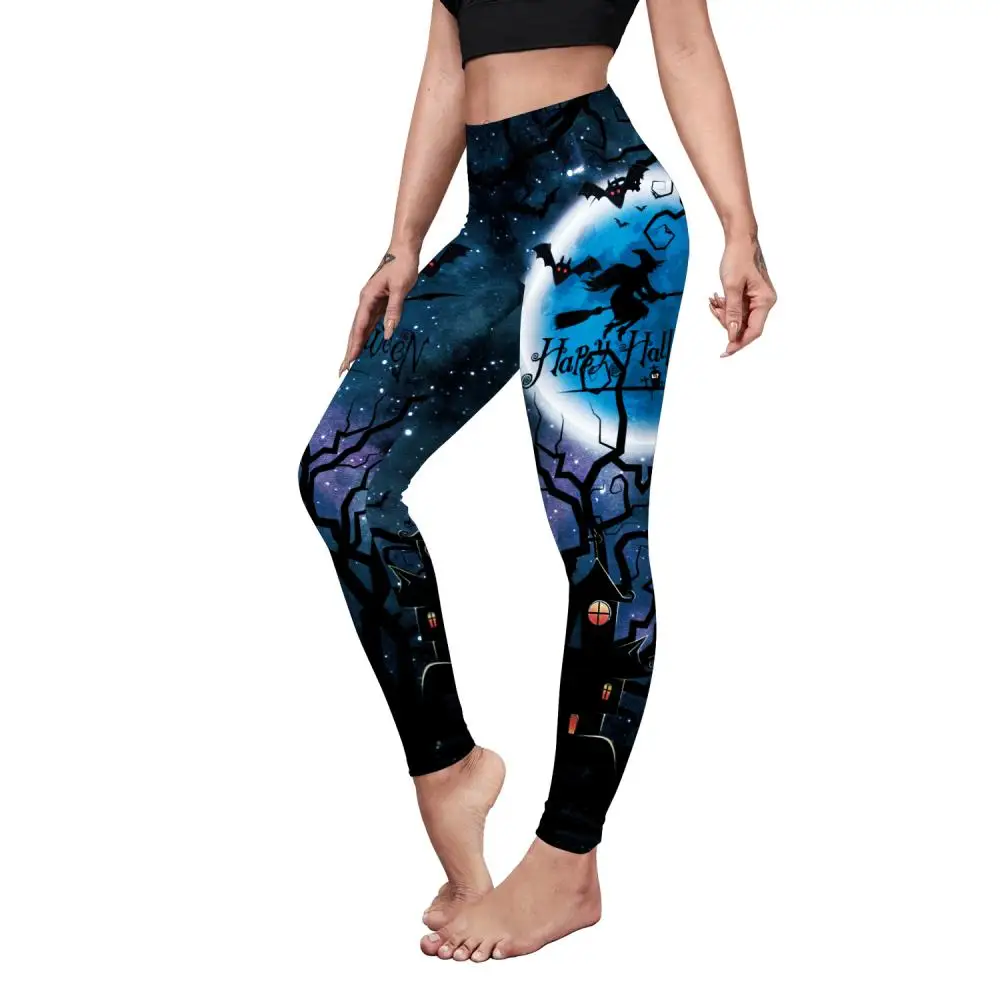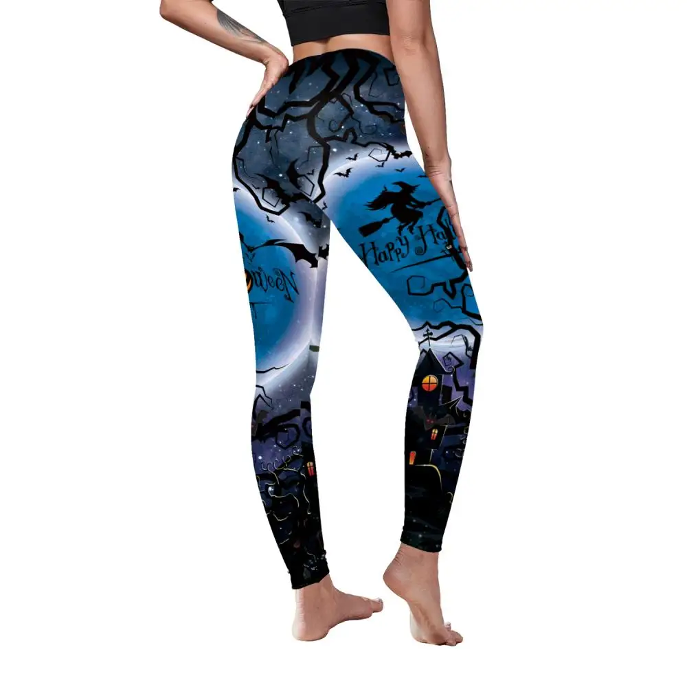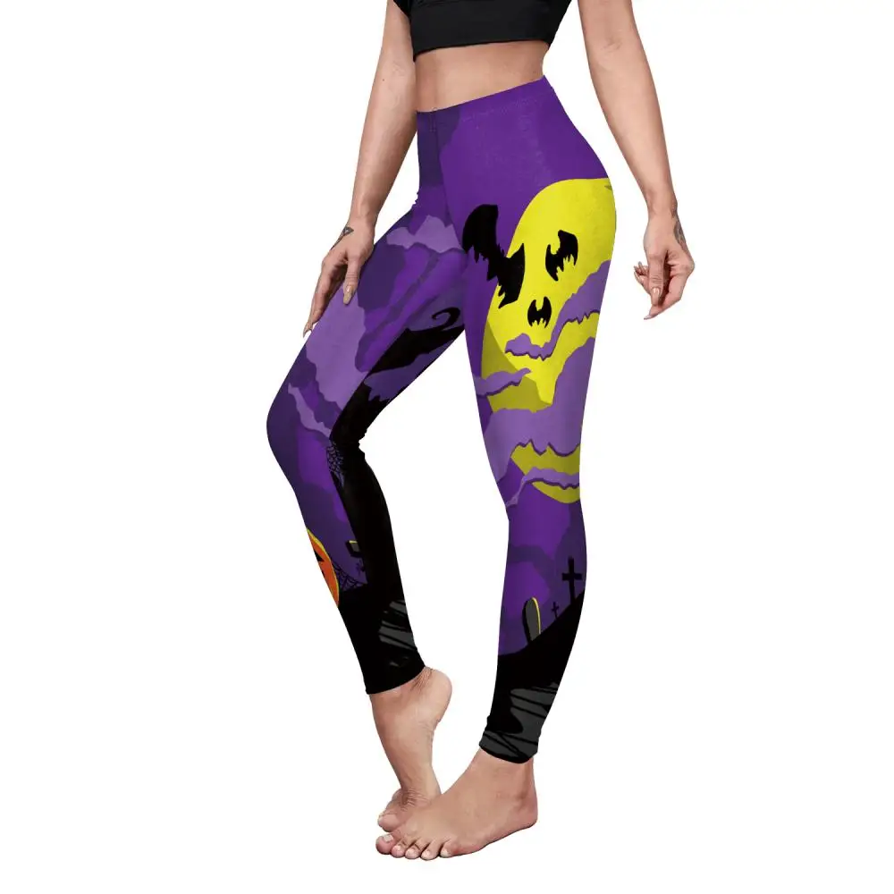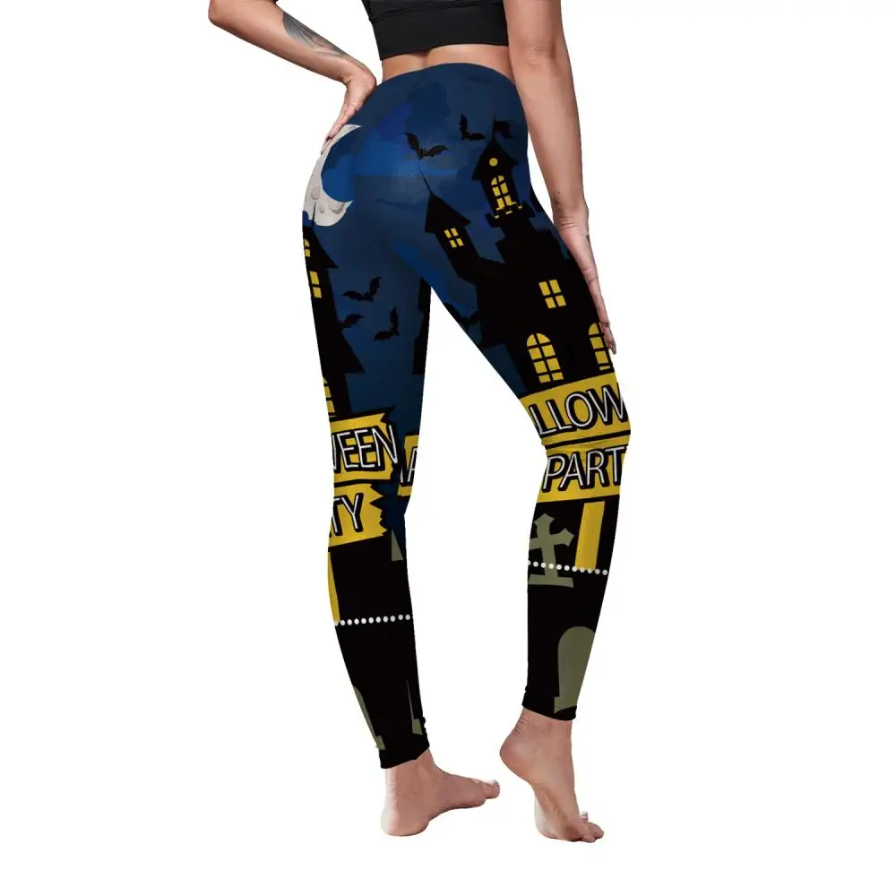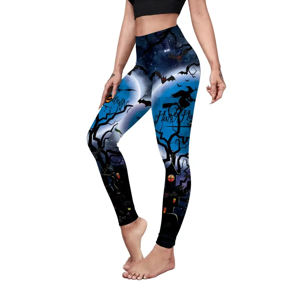 Nadanbao Women Leggings Sexy Tights Halloween Orange Pumpkin 3D Printed Workout Trousers Gym Home Mid Waist Streetwear Pants