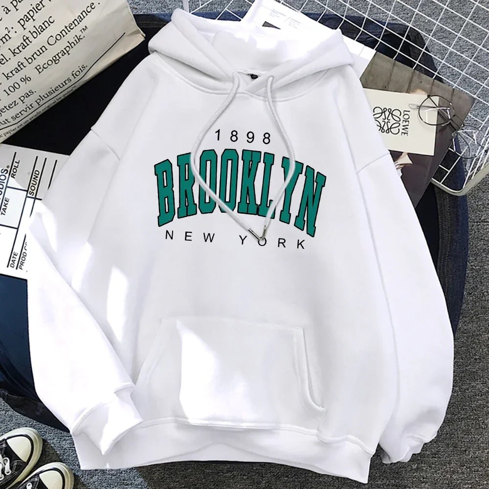 New 1898 Brooklyn York Printed Women Hoodies Fleece Hoody Creativity Pullover Clothing Street Loose Sweatshirts Women’S