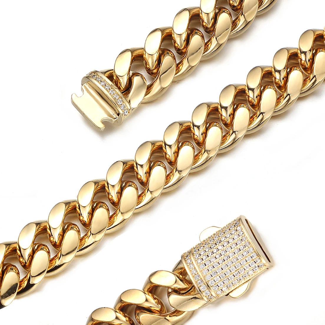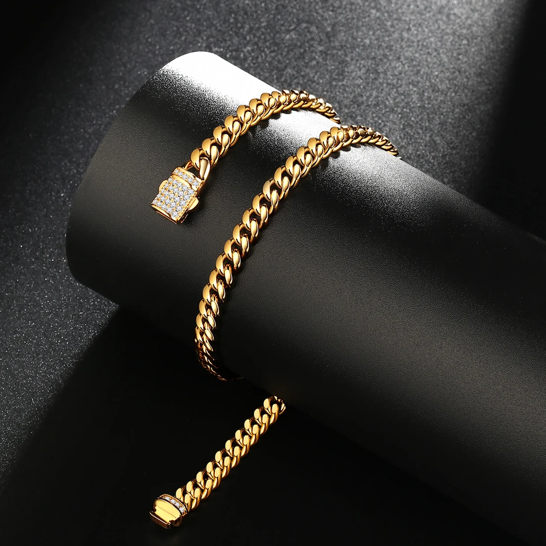 New Arrival 6mm-18mm Any Length 316L Stainless Steel Miami Curb Cuban Chain Necklace for Men & Women Gift Crystal Lock