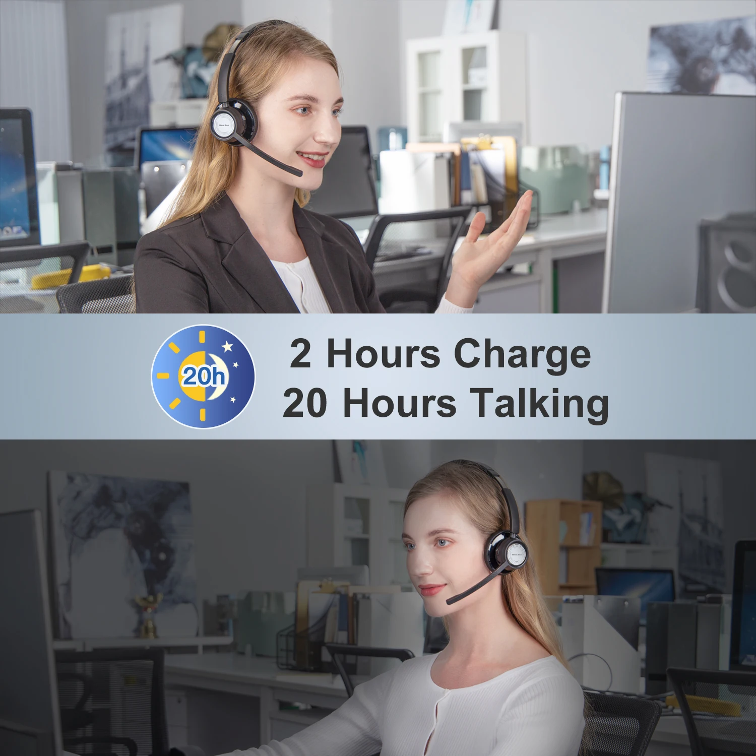 And the microphone pole can be rotated 135 degrees positive or negative, you can switch to wear at will. In the process of remote call, does not affect the scene to receive information and communication and interaction.