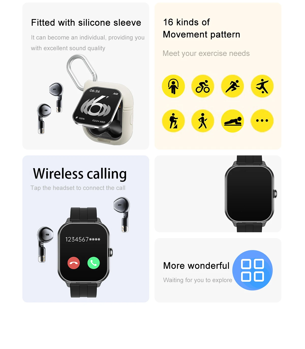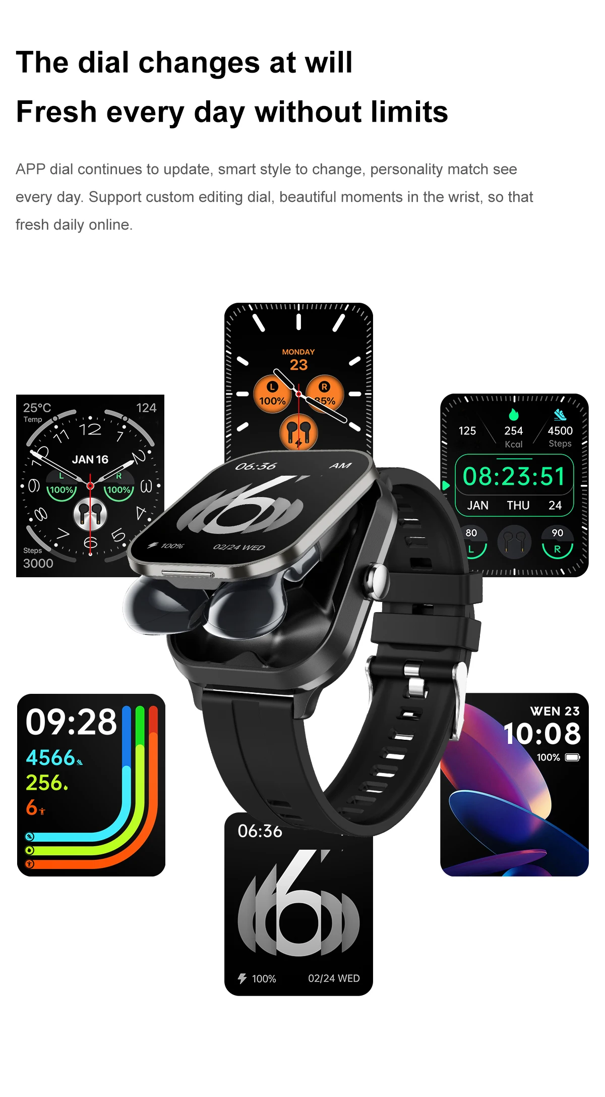 New Bluetooth calling smartwatch with male and female 2-in-1 wireless Bluetooth earphones connected to mobile fitness and sports