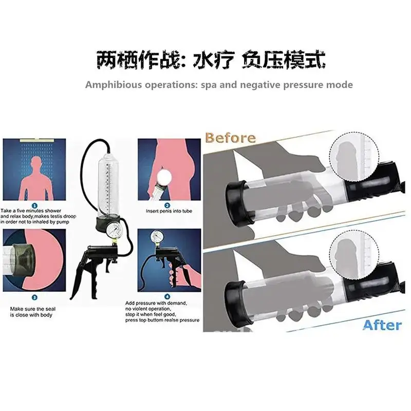 New Male Penis Vacuum Pump Enlargement Water Air Exerciser with Gauge Dick Enhancer Extender Stretcher Massager Sex Toys For Men
