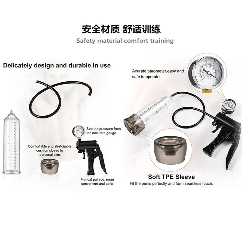 【material 】Penis tube safe ABS material【Features】Designed to increase penis length and prevent premature ejaculation with frequent use.Manual operate, control pleasure by yourself, press the ball to take out air, and press the valve to release pressureMedical ABS tube, safe and anti-crack, transparent look, allow you to feel the change of your penis in both vision and feelingThe cylinder is attached to a soft rubber sleeve, simply place this sleeve over your penis then steadily pump by hand。Confidential packaging, shipping, deliveryNote: due to the measurement method and measuring instruments different, so the size may have a little deviation, this not belong description error.