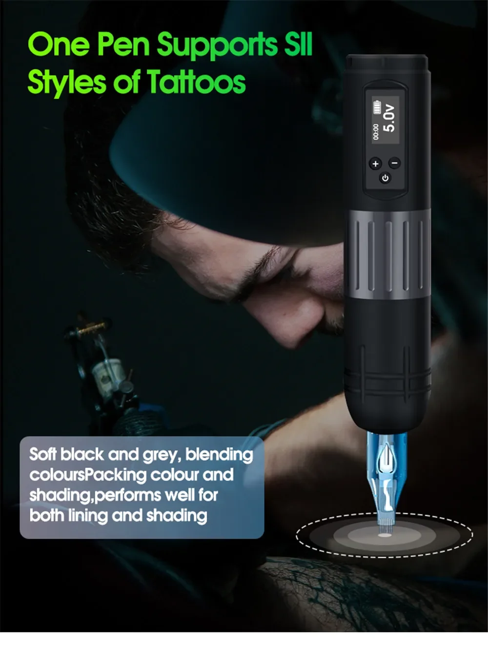 New Professional Tattoo Machine Pen Kit Wireless 1600mAh LED Display Lithium Battery Portable Tattoo Machine Tattoo Artist Tools