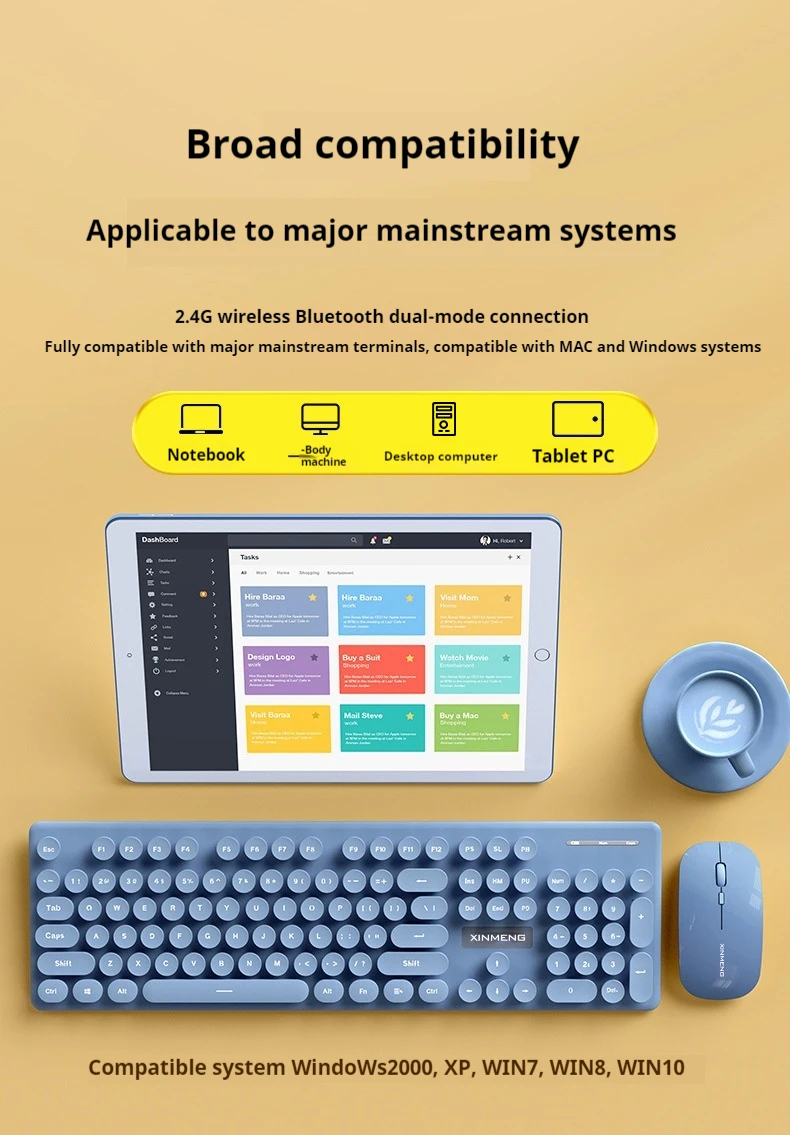 New Rechargeable Wireless Keyboard And Mouse Set Bluetooth Dual Mode Silent E-Sports Gaming Keyboard Office Keyboard Office Gift