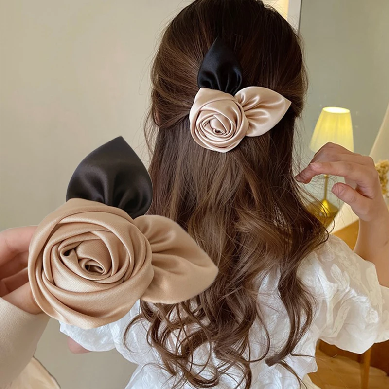 New Ribbon Bow Hairpin for Women Girls Camellia Hairclip Retro Headdress Bow Hairgrips Back Head Party Vintage Hair Accessories