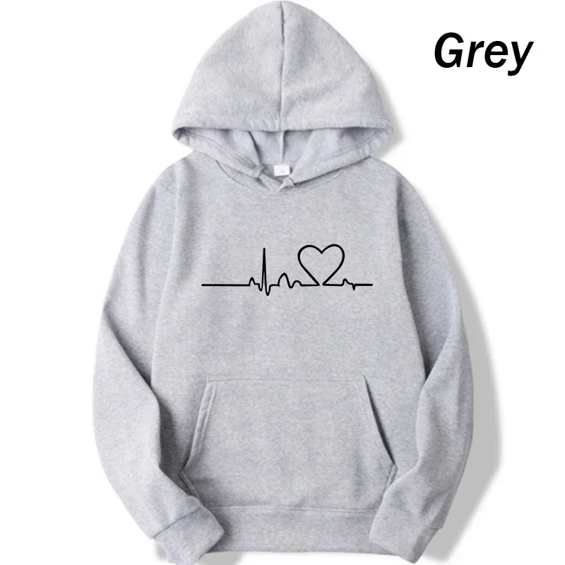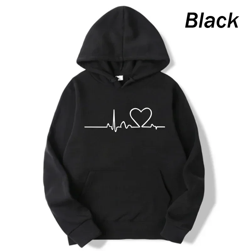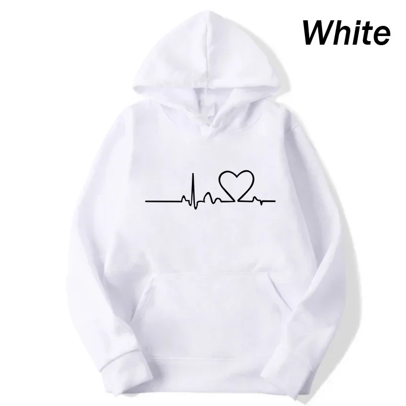 New Women Hoodies Autumn Winter Heartbeat Print Men Loose Casual Hoodie Couple Sweatshirts Ladies Hooded Tops Streetwear Clothes