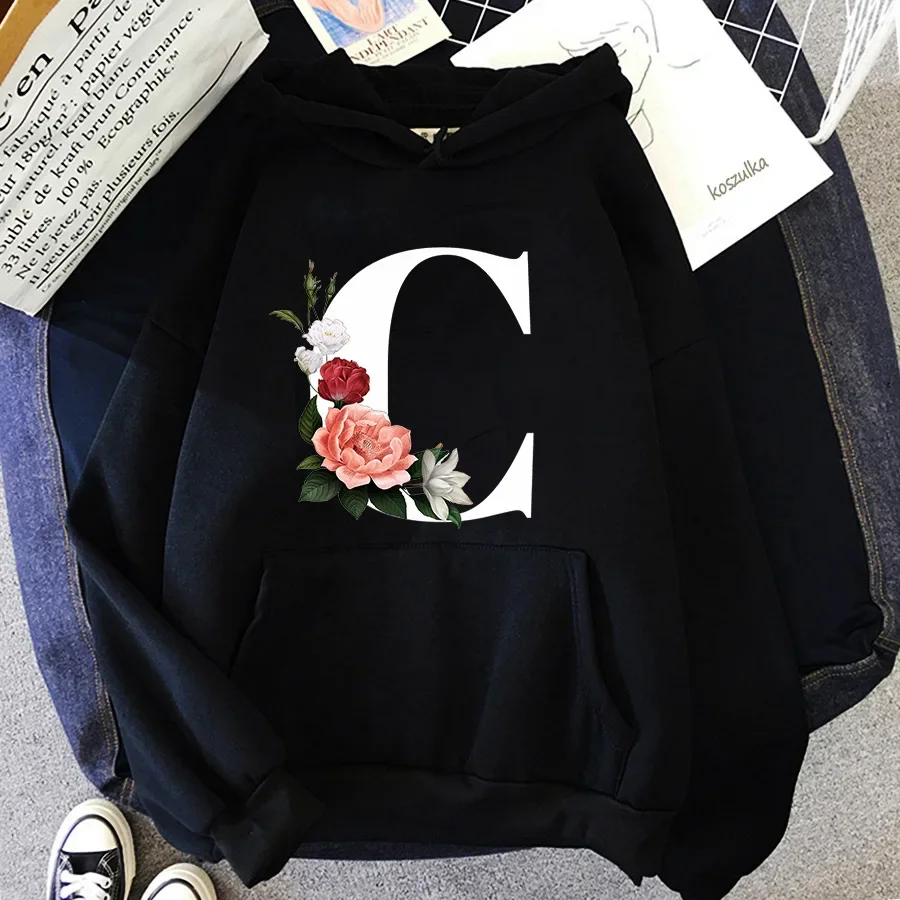 New Women’s Original Hoodie Hooded 26 Letters Printed Pattern Loose Casual Shirt Kawaii Clothes Sweatshirts Aesthetic Streetwear