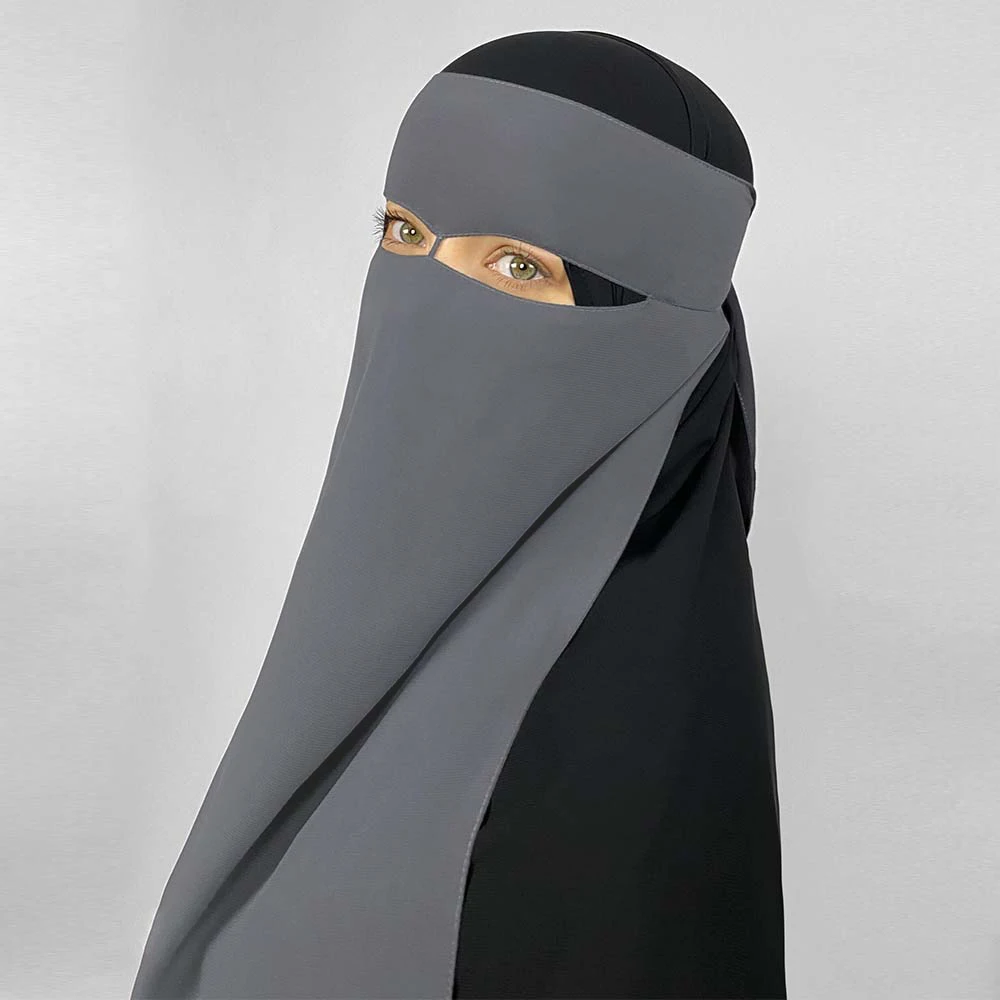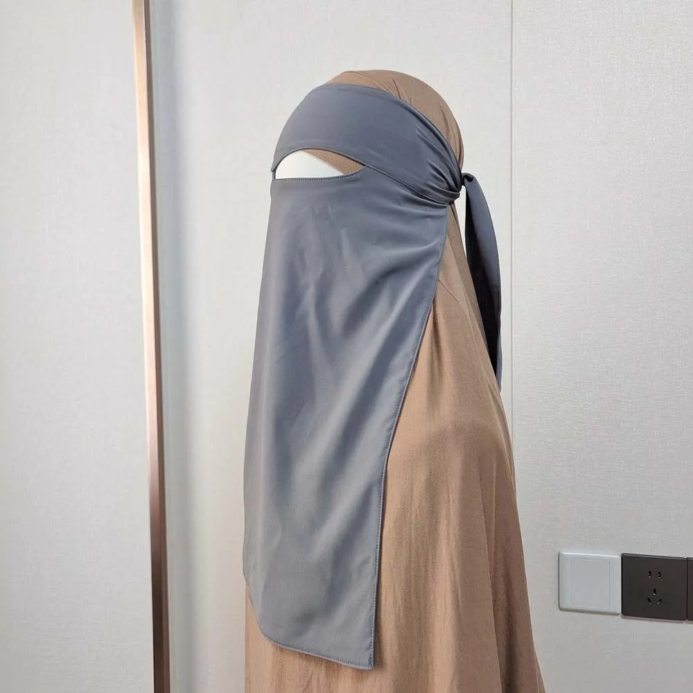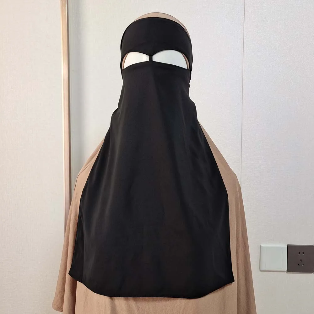 Niqab with Eagle Eye Nose String Chiffon 2 Layer Face Cover Veil Eid Ramadan Muslim Women Headscarf Reversible Kopftuch Hijab
