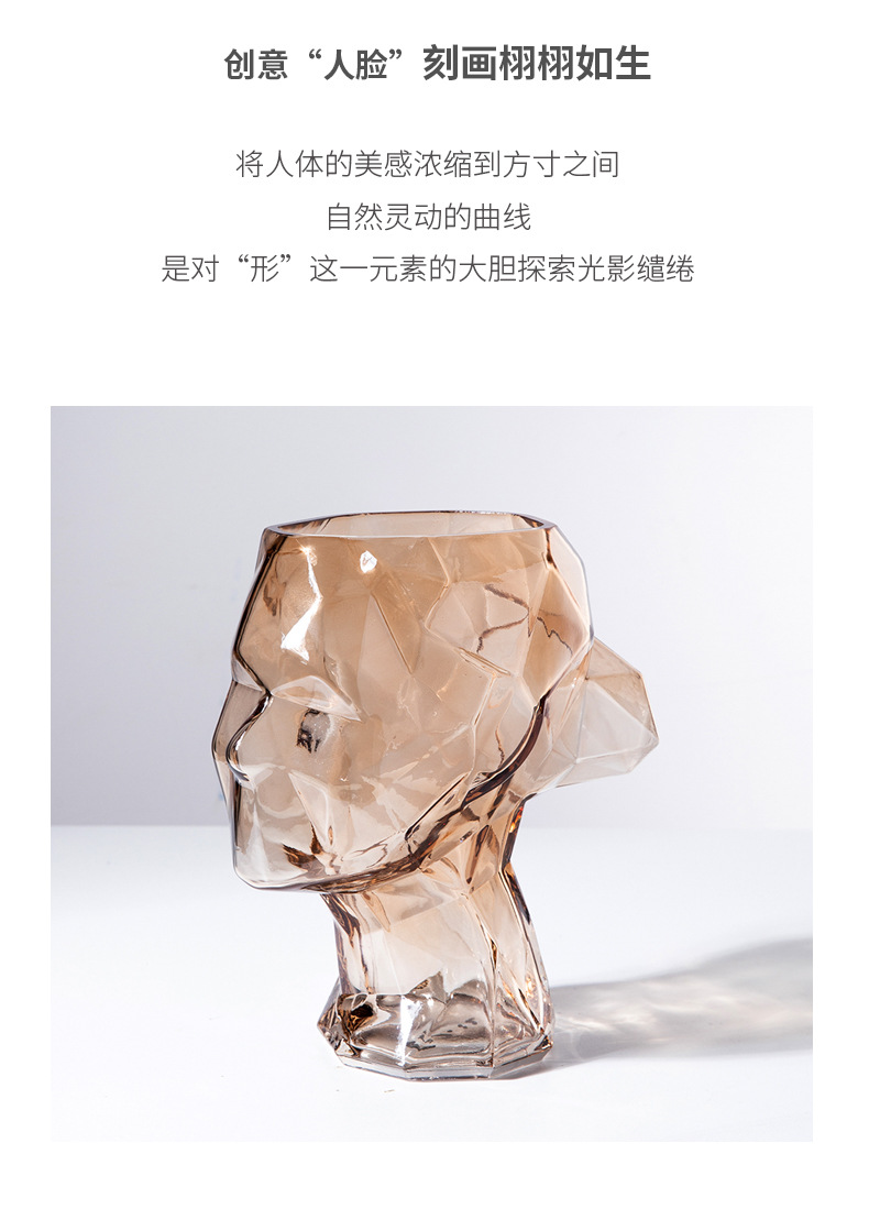 Nordic abstract art facial glass vase decoration, dried flower planter, creative living room dining table home decoration