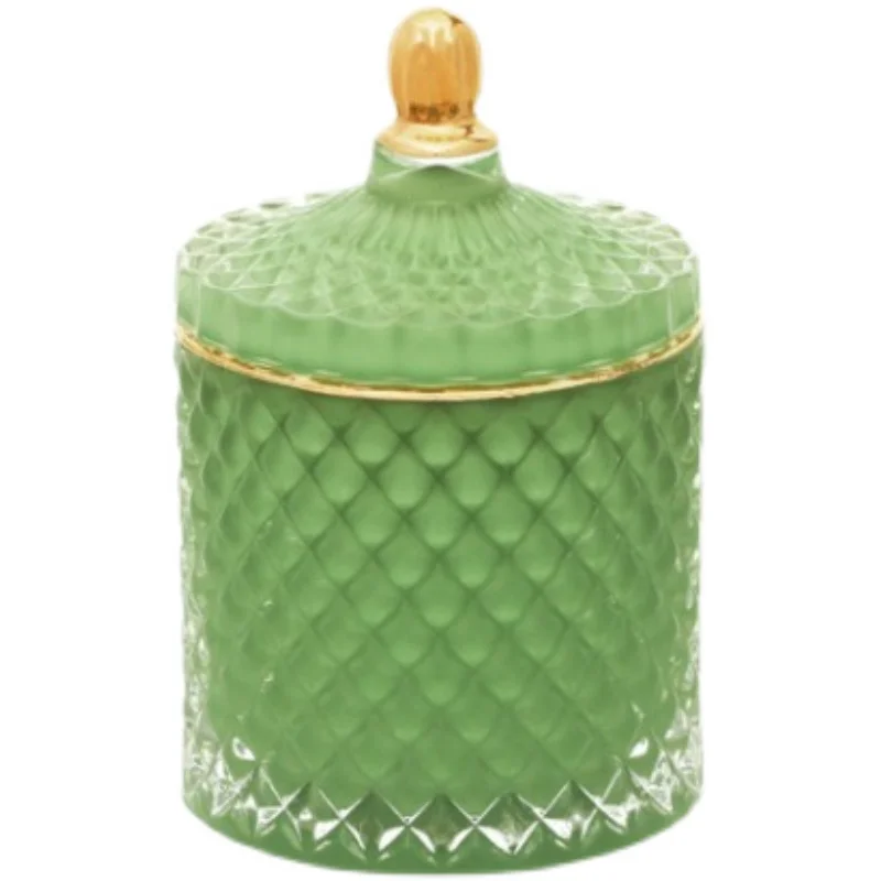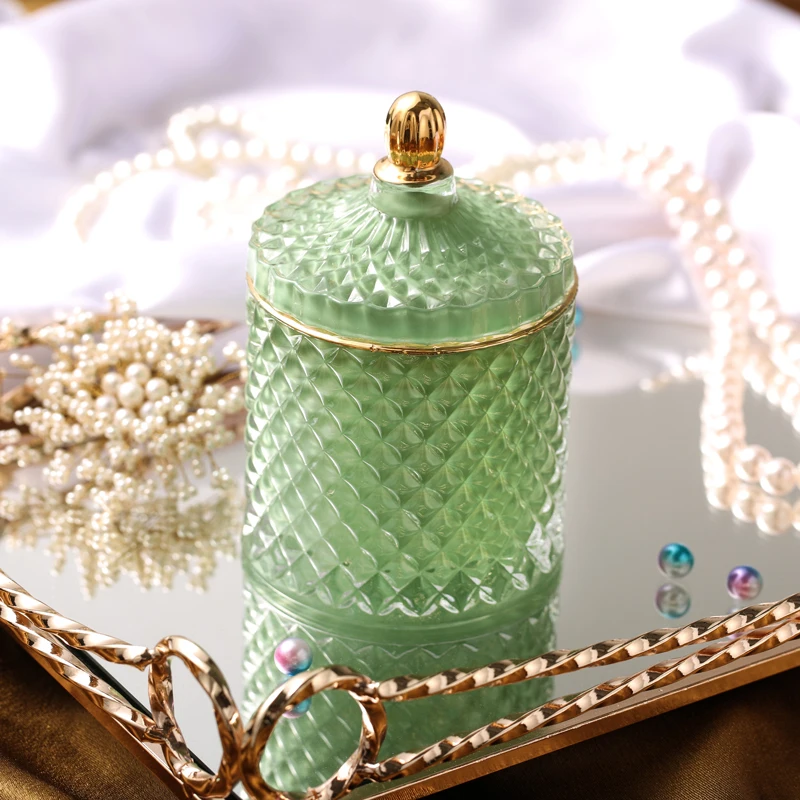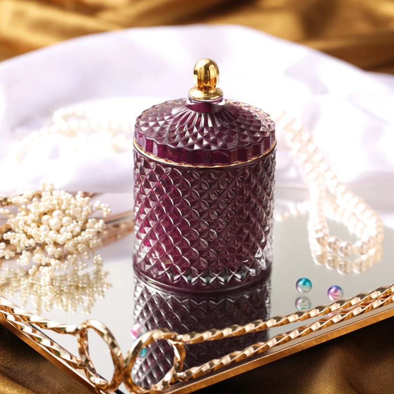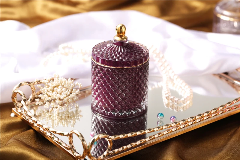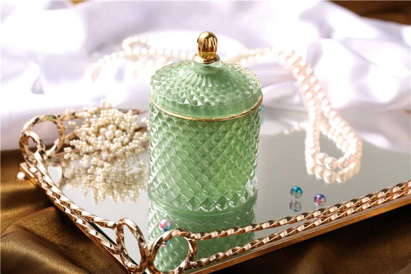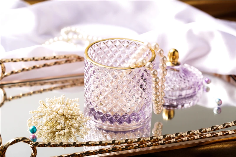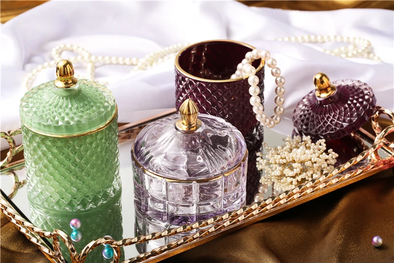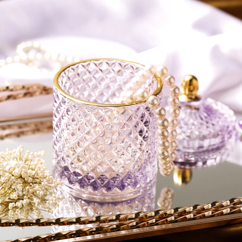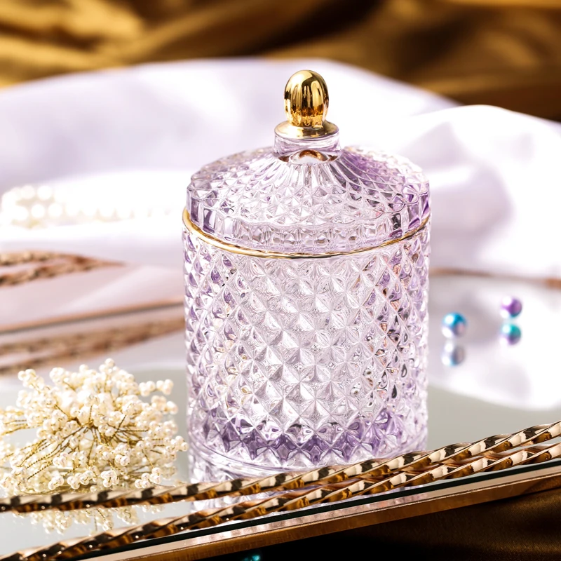 Nordic Crystal Glass Jewelry Box Household Cotton Swab Box Jewelry Storage Jar Desktop Decoration Storage Box Candle Jar