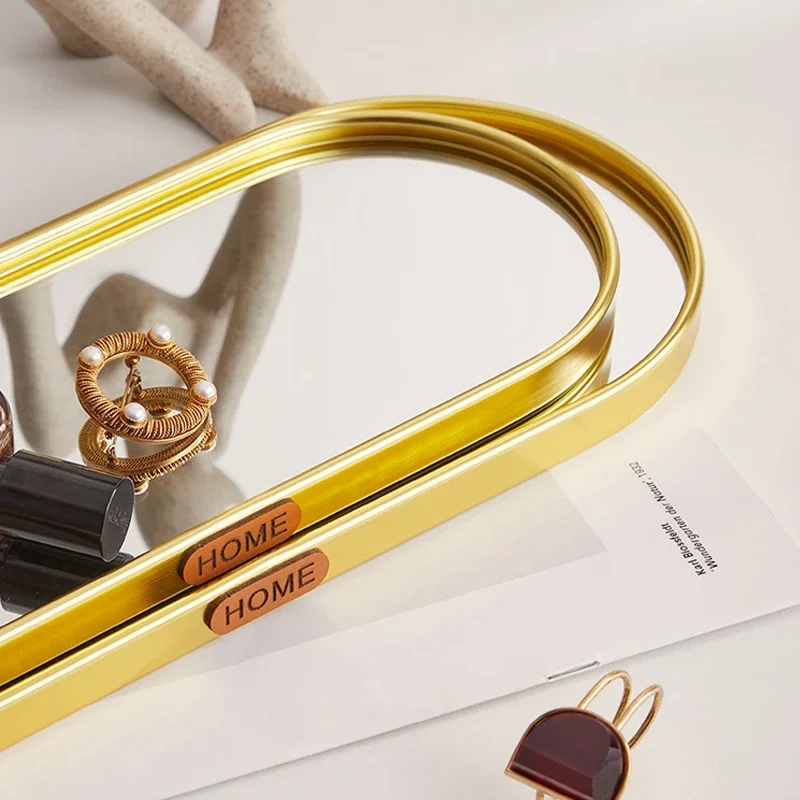 Nordic Glass Oval Aromatherapy Candle Mirror Storage Plate Gold Jewelry Living Room Decoration Desktop