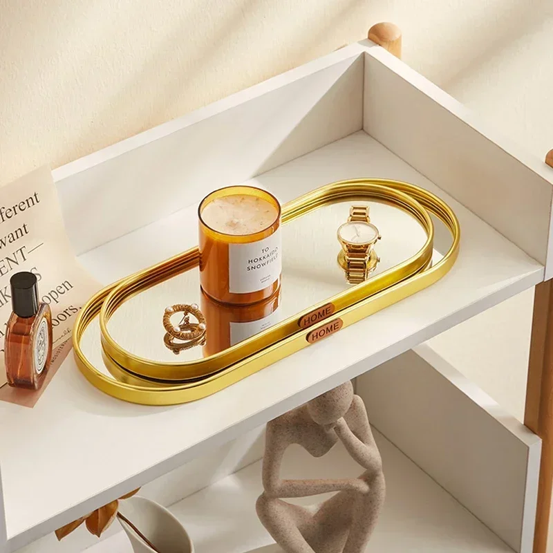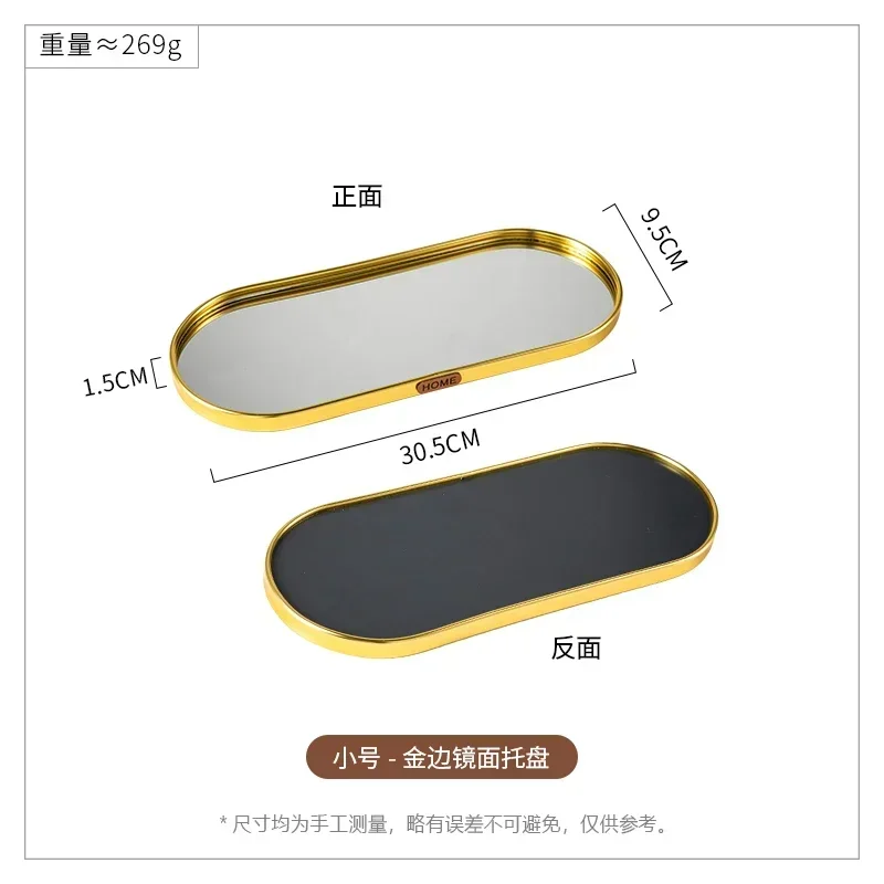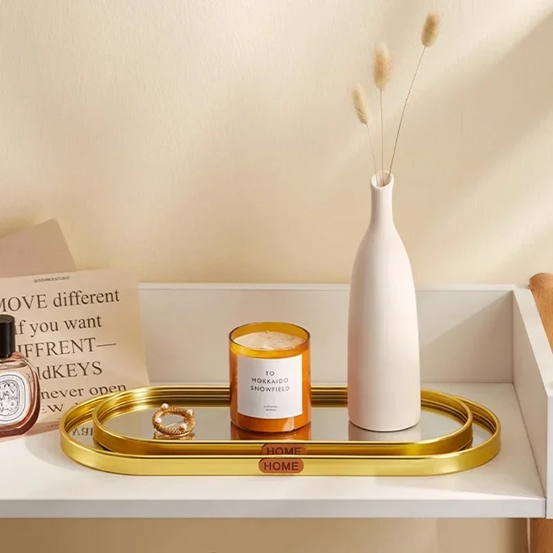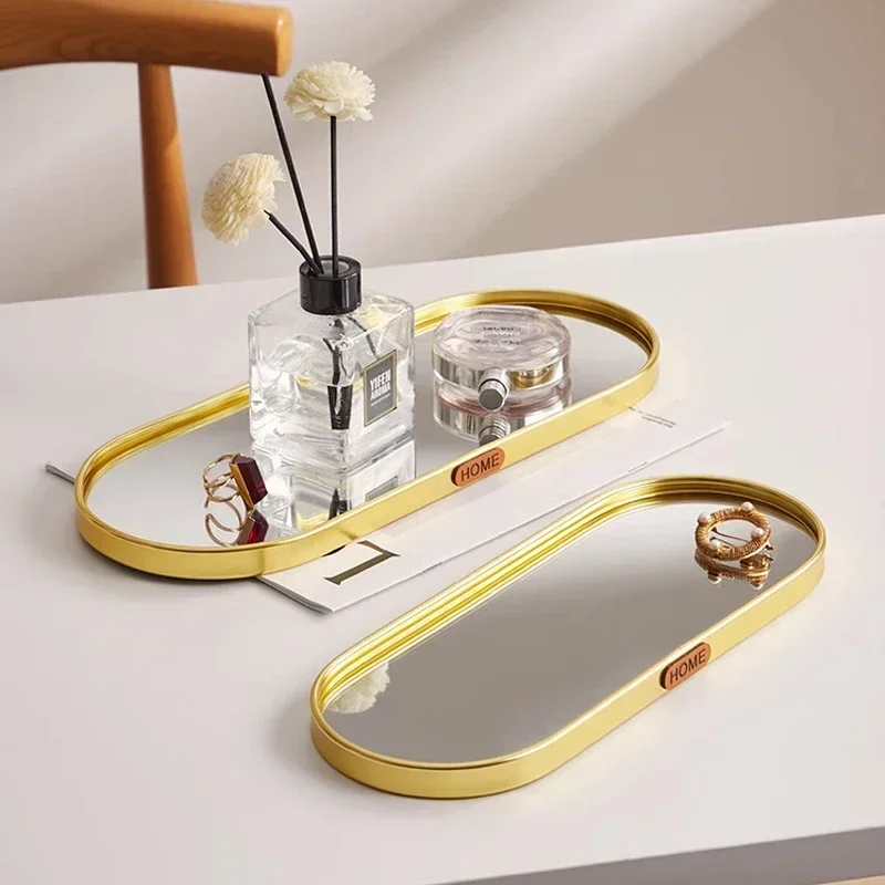 Nordic Glass Oval Aromatherapy Candle Mirror Storage Plate Gold Jewelry Living Room Decoration Desktop