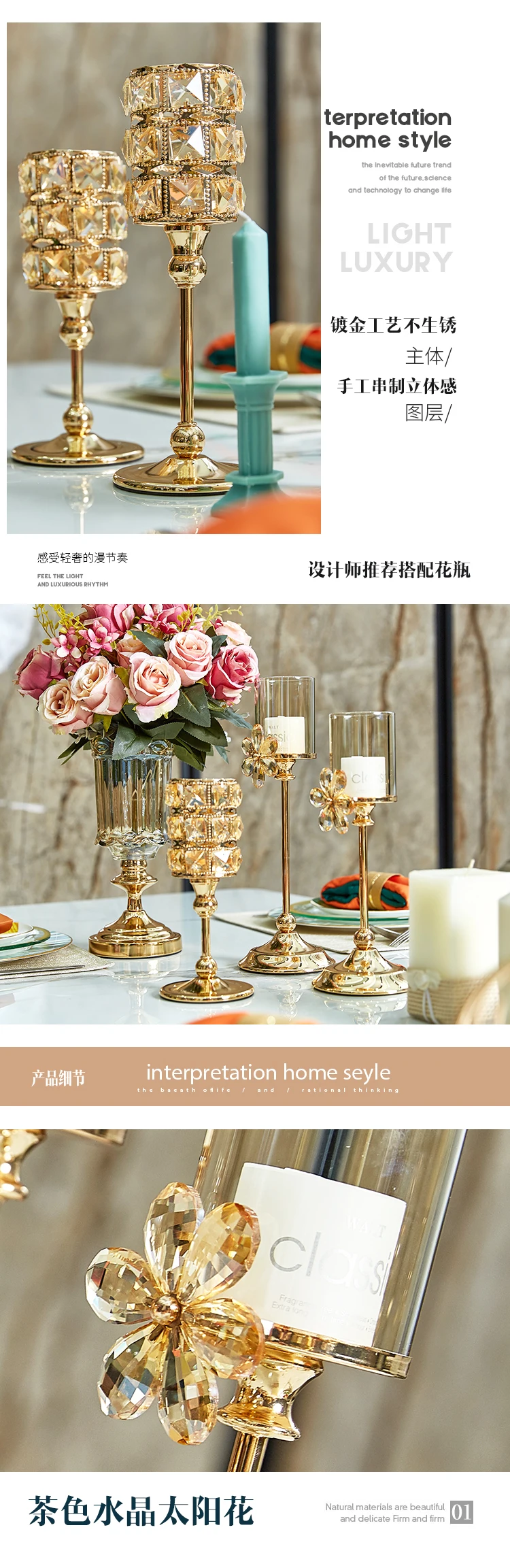 Nordic Luxury Crystal Glass Candle Holder, Golden Candlestick, Wedding Centerpieces, Tables, Coffee Candelabra, Home Decoration