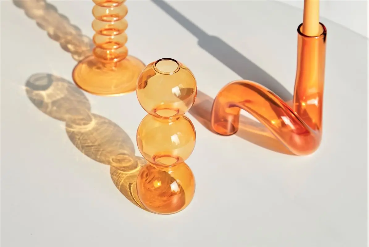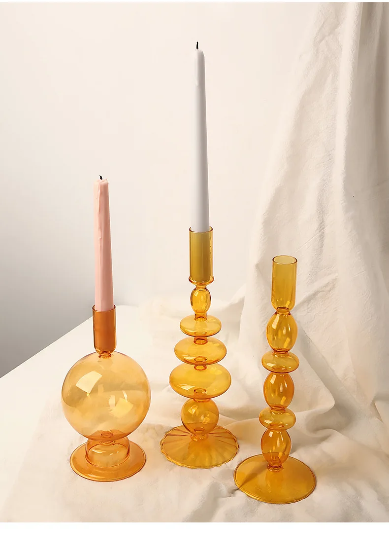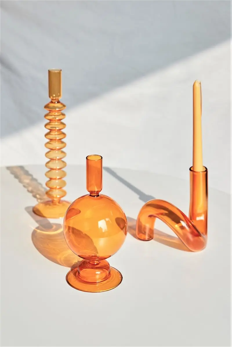 Nordic Orange Glass Taper Candle Holder Creative Home Decor Wedding Party Dinner Candlelight Decoration Living Room Candlestick