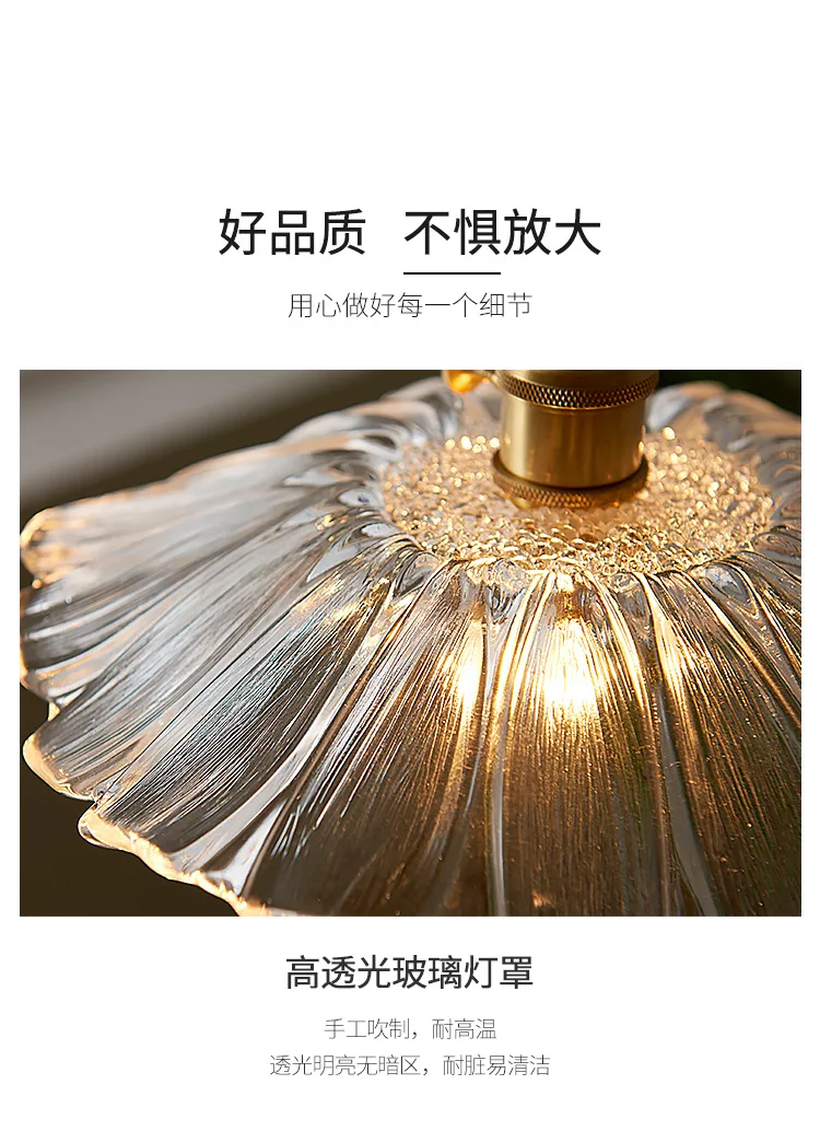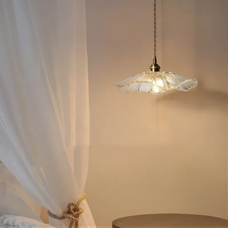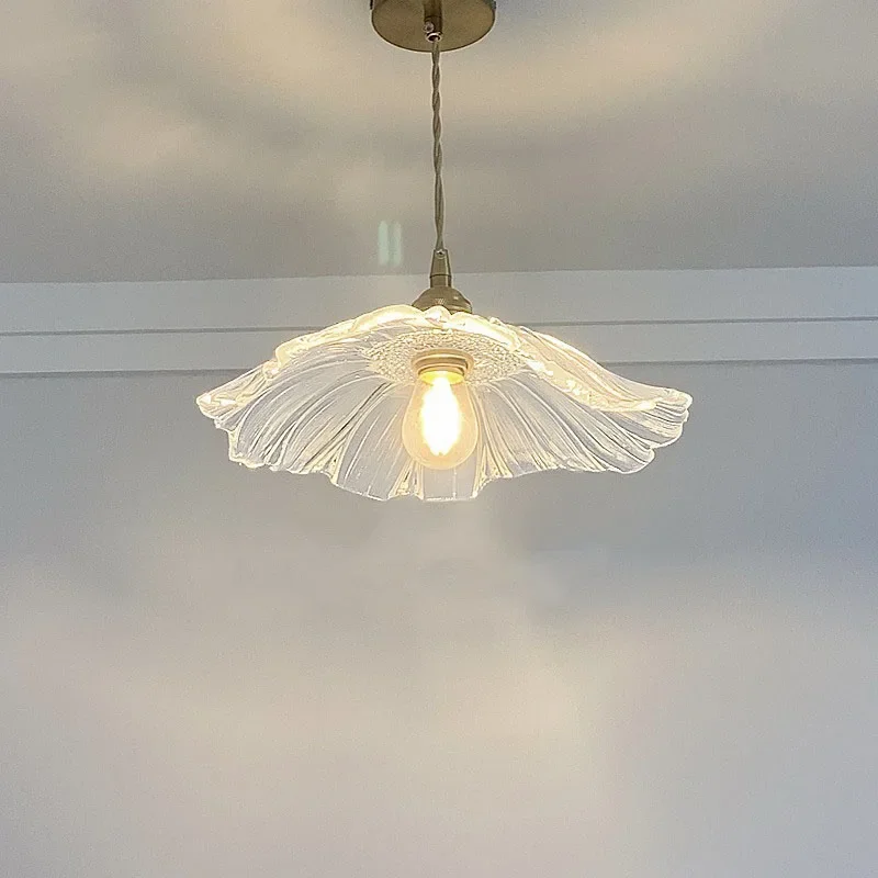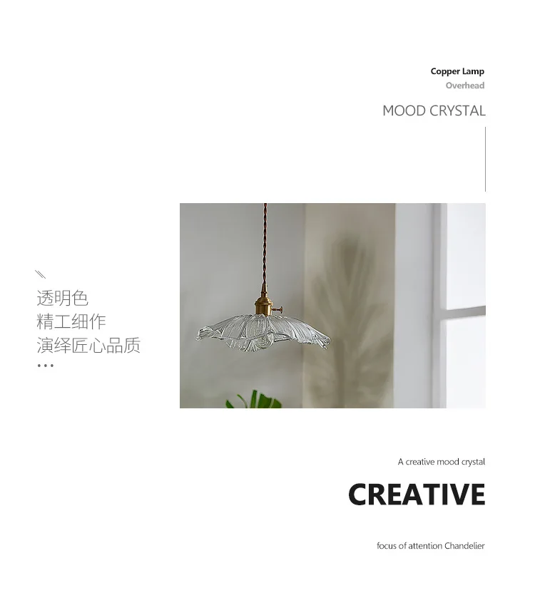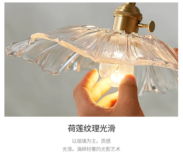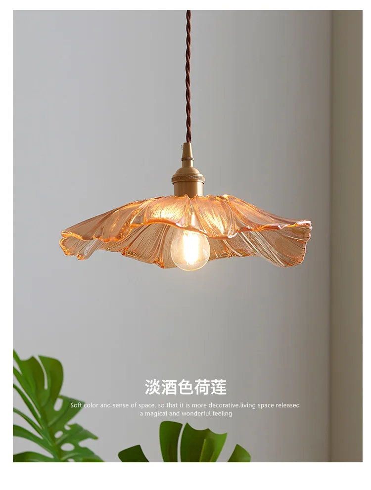 Nordic Simple Japanese Retro Restaurant lights Entrance Balcony Bay Window Aisle Lotus Leaf Shape All-copper Glass Chandeliers