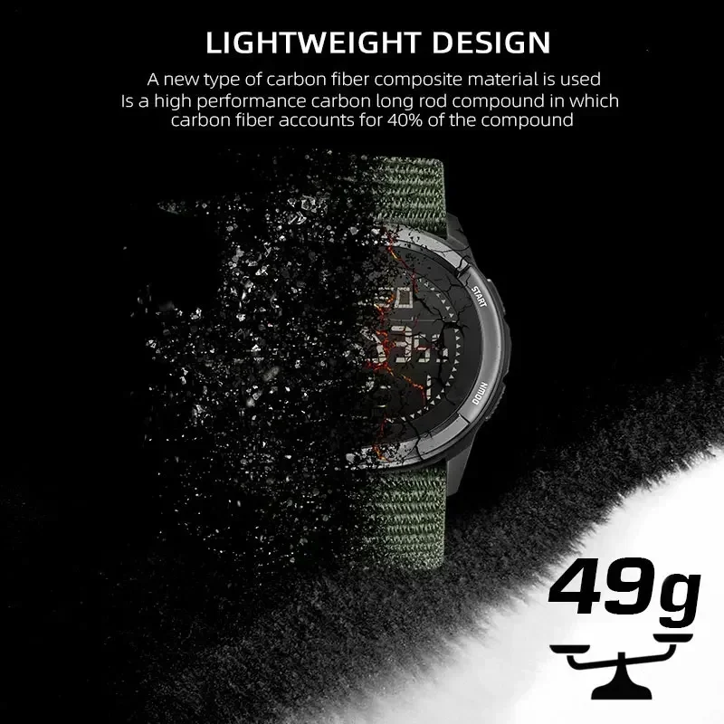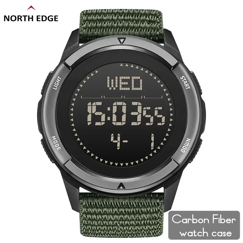 NORTH EDGE ALPS Men’s Digital Carbon fiber Watch Shock Militray Sports Super Light Outdoor Compass Waterproof 50M Wristwatches