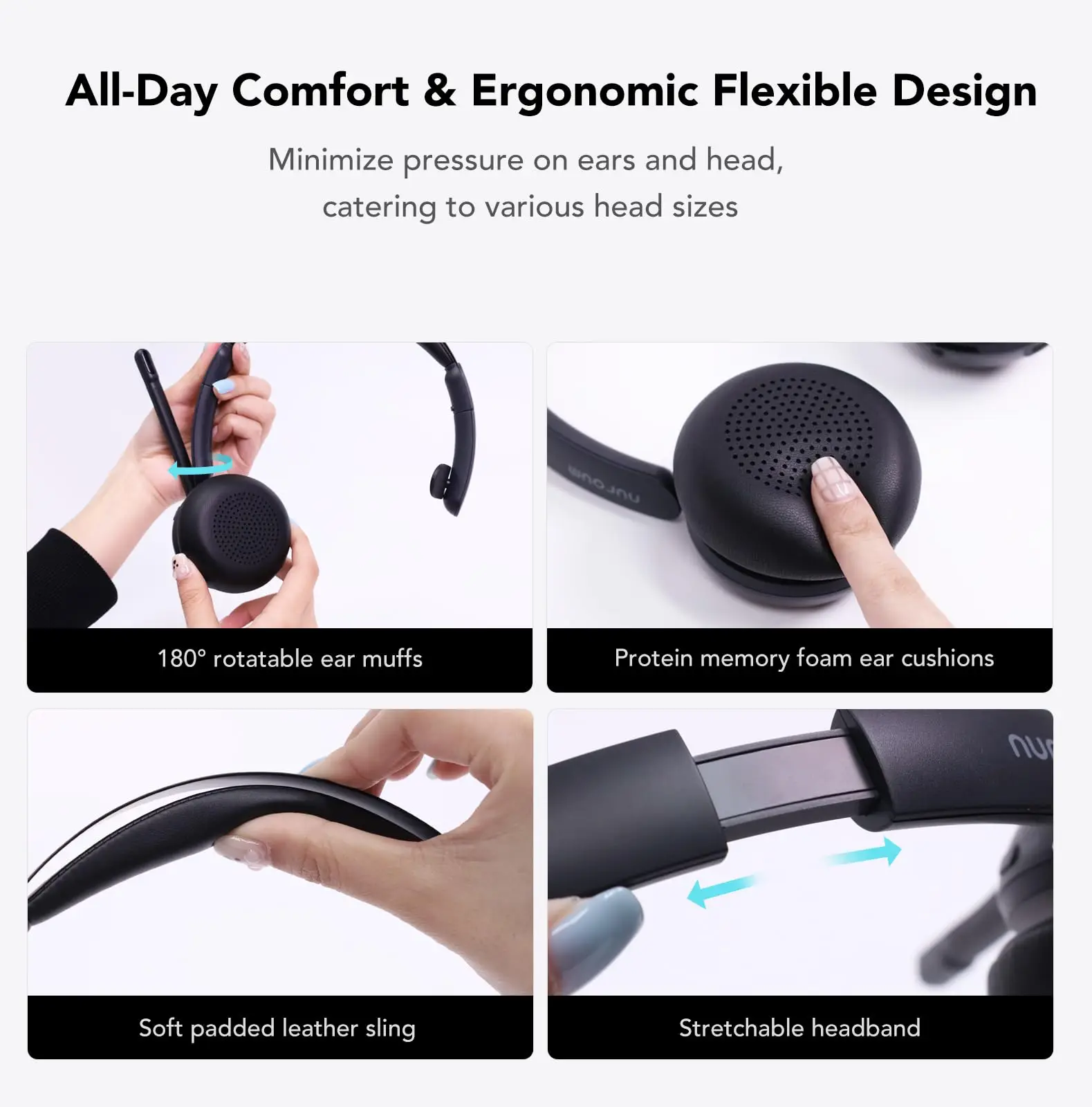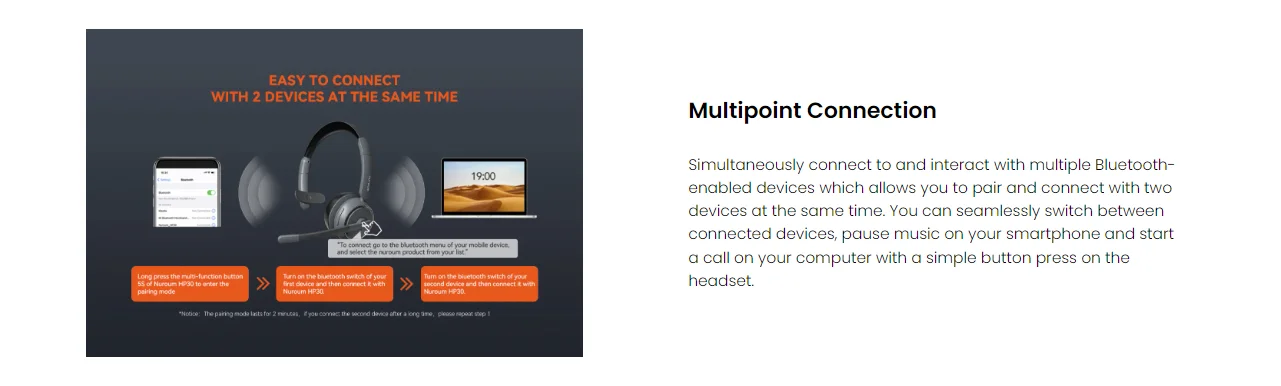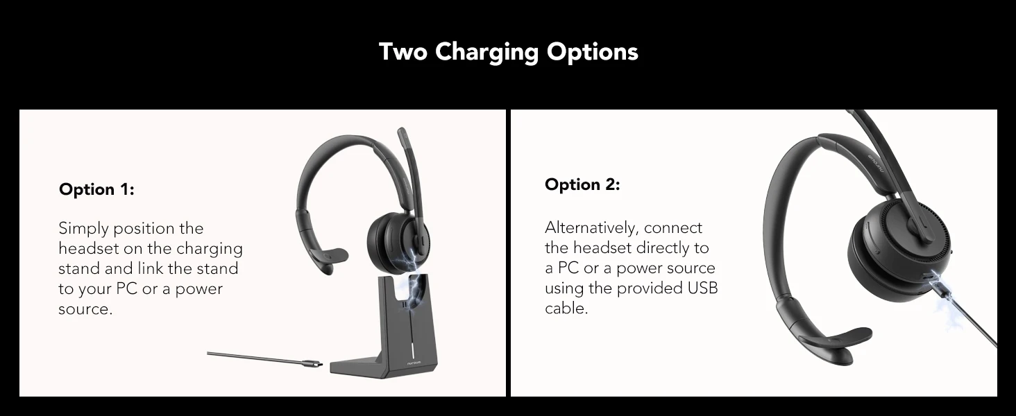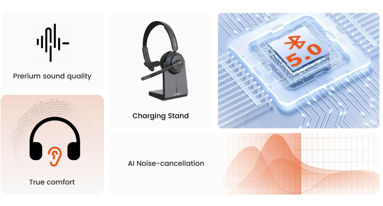 Nuroum HP31S Wireless Single Ear AI Noise Cancellation Headset With Charging Stand Mics Bluetooth USB/Type-C/Type-A