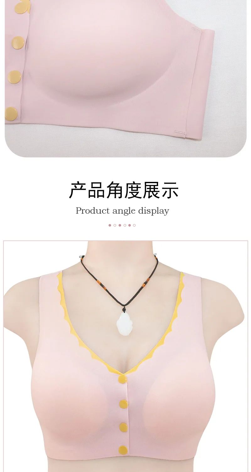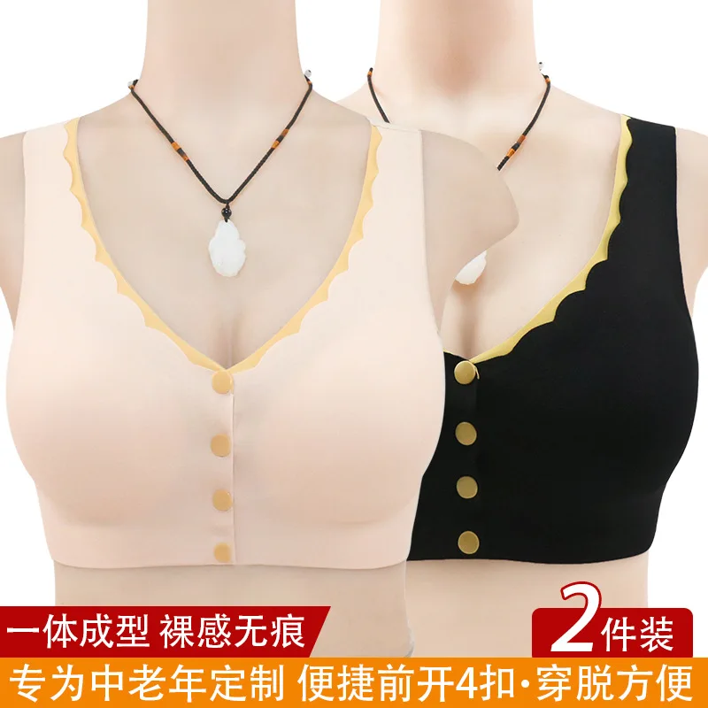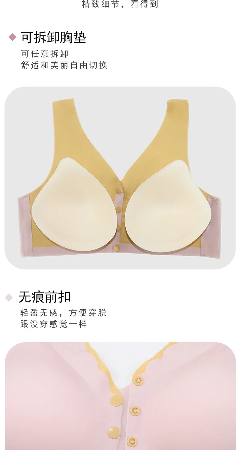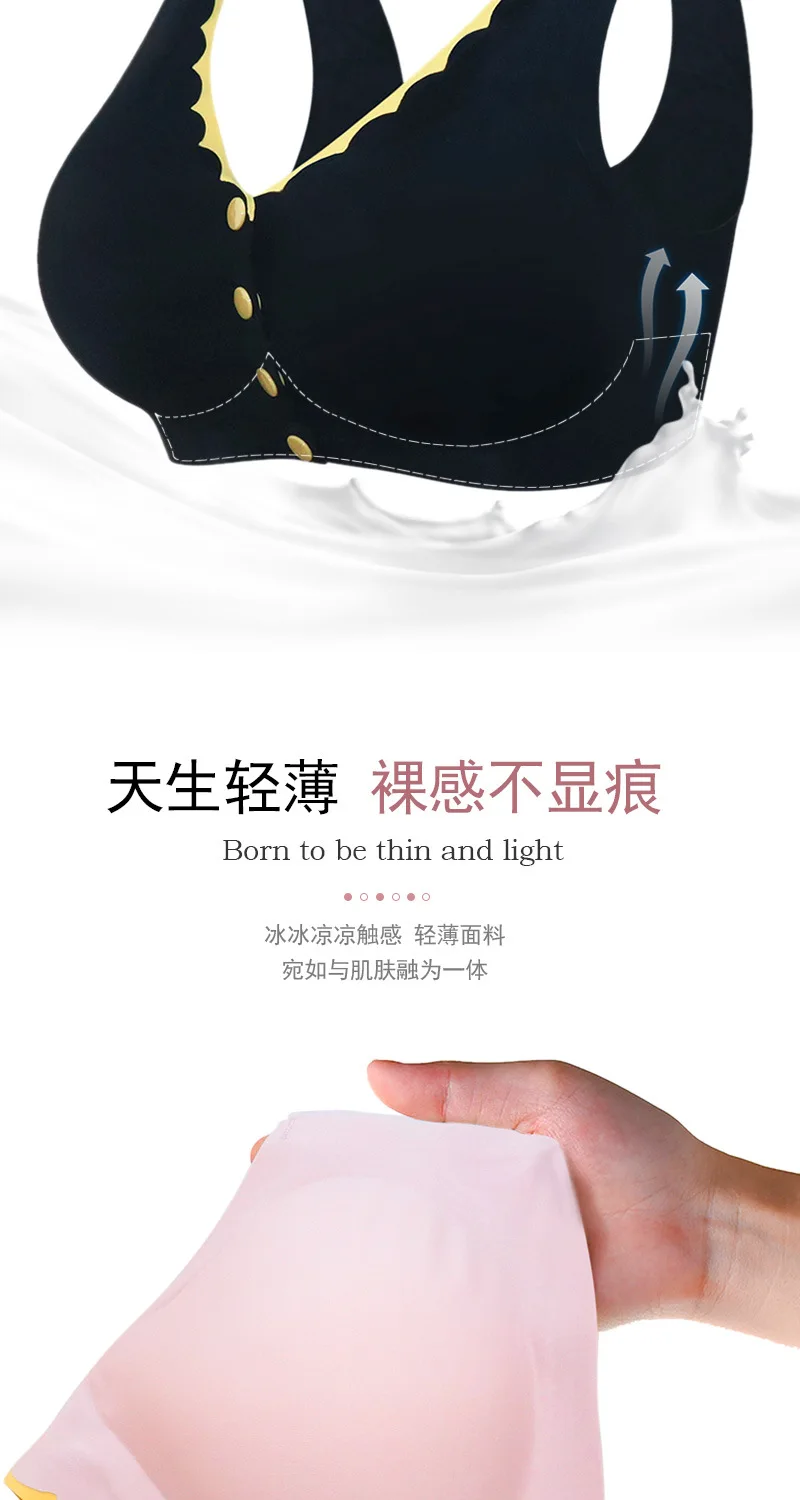 NY22 Middle-aged and elderly large size women’s contrast color water drop cotton large stretch no steel ring front buckle bra