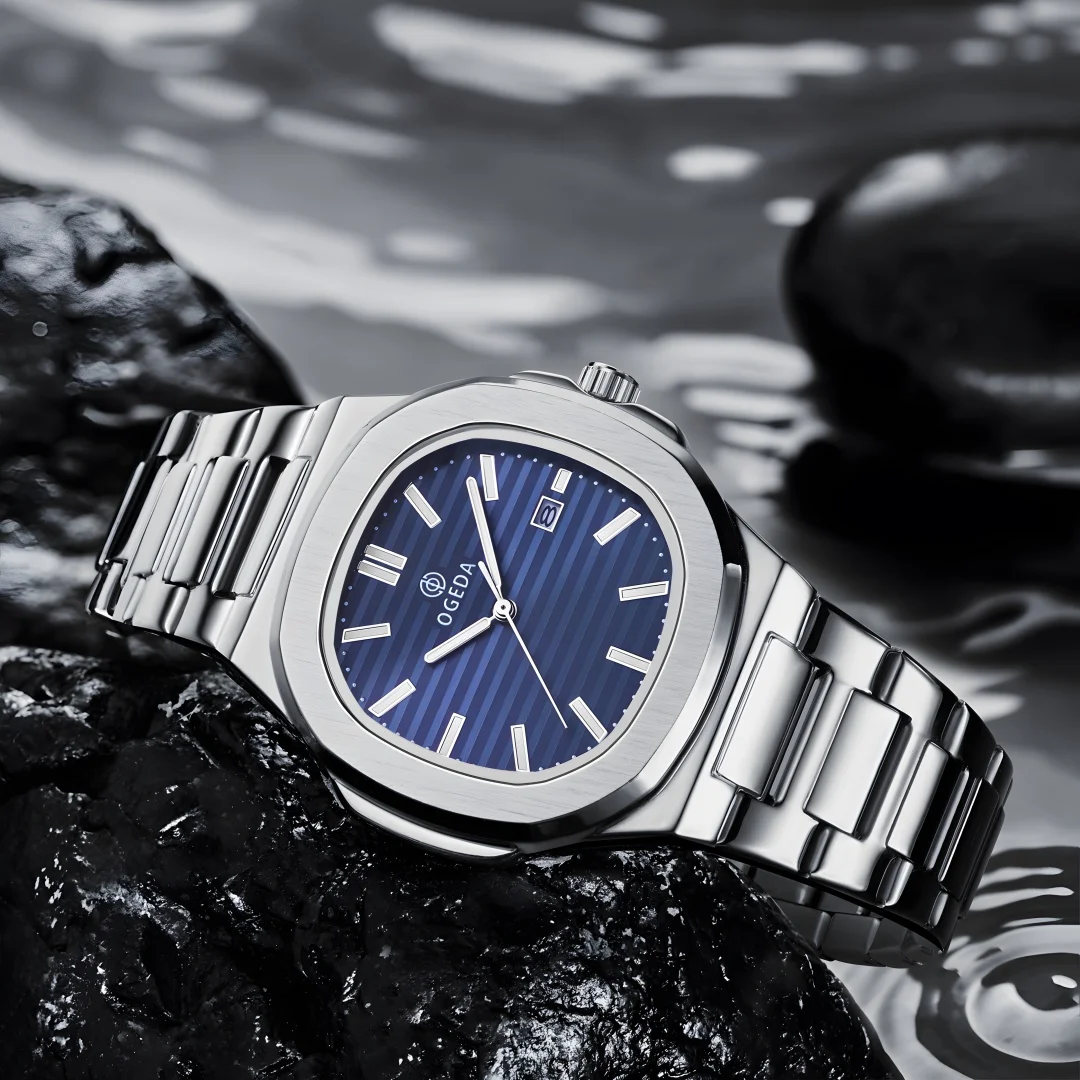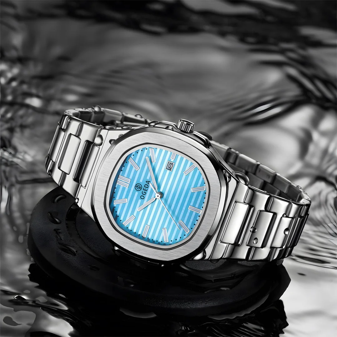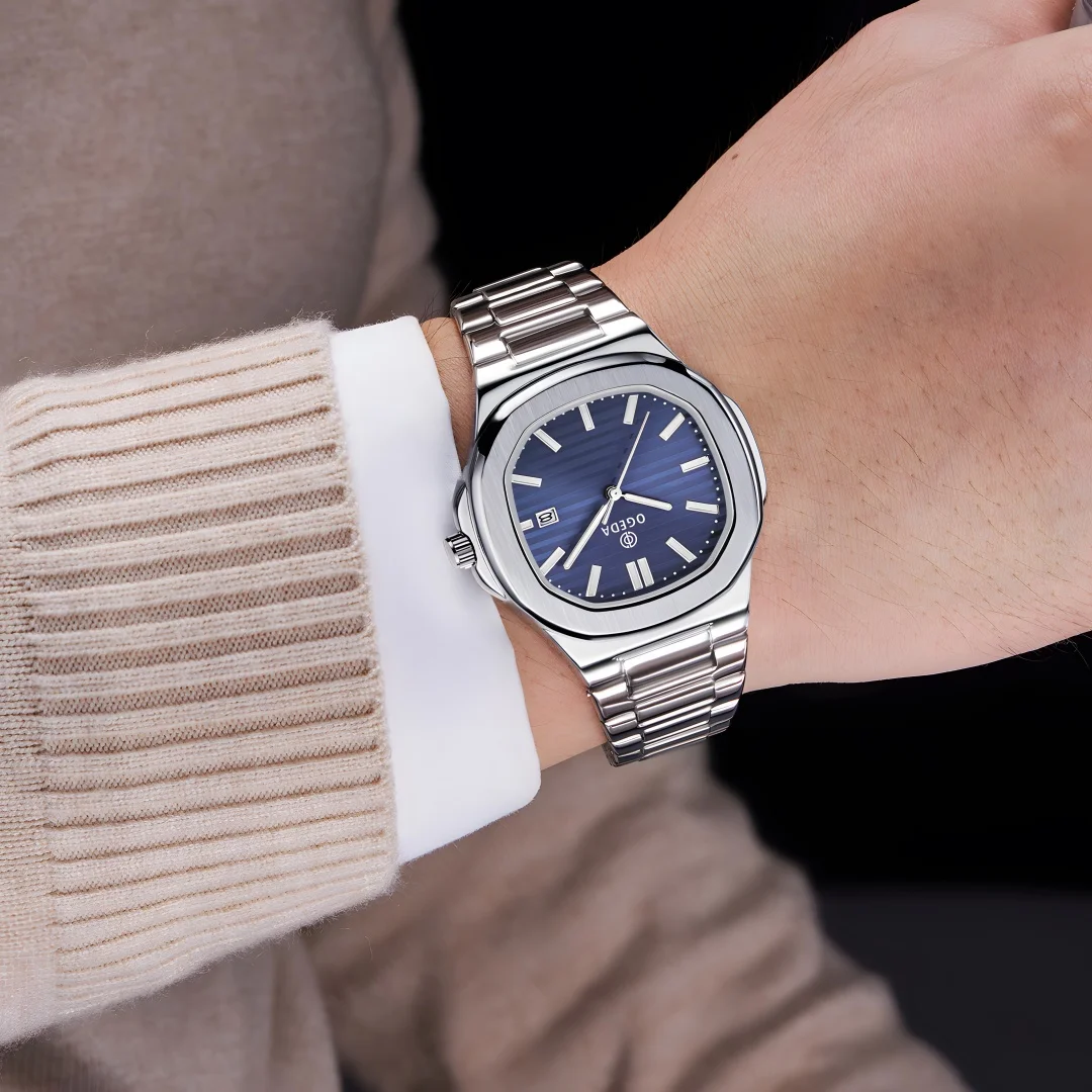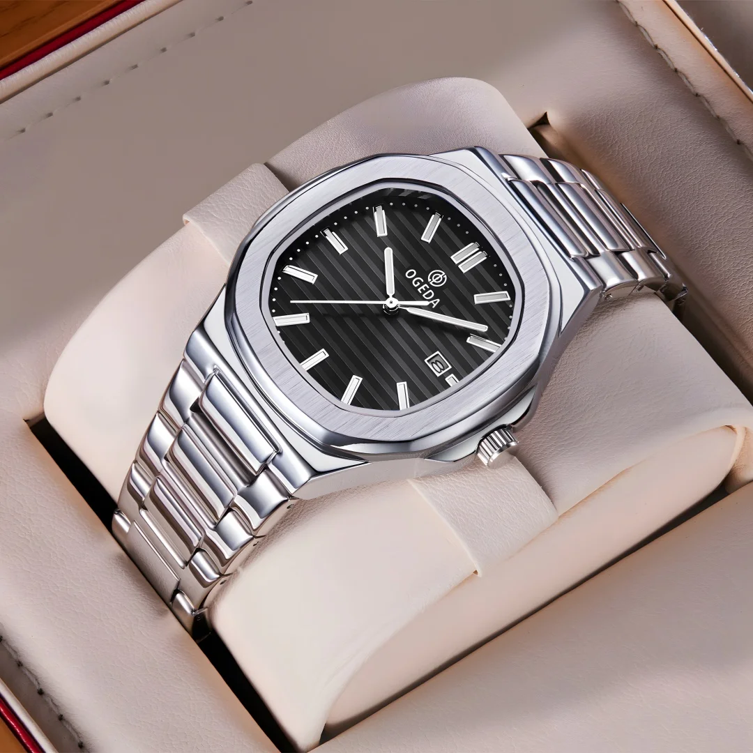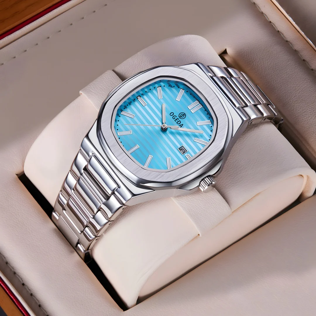 OGEDA 2024 new 40MM fashionable men’s quartz watch with calendar swimming sports 3Bar glowing reloj hombre watches for men